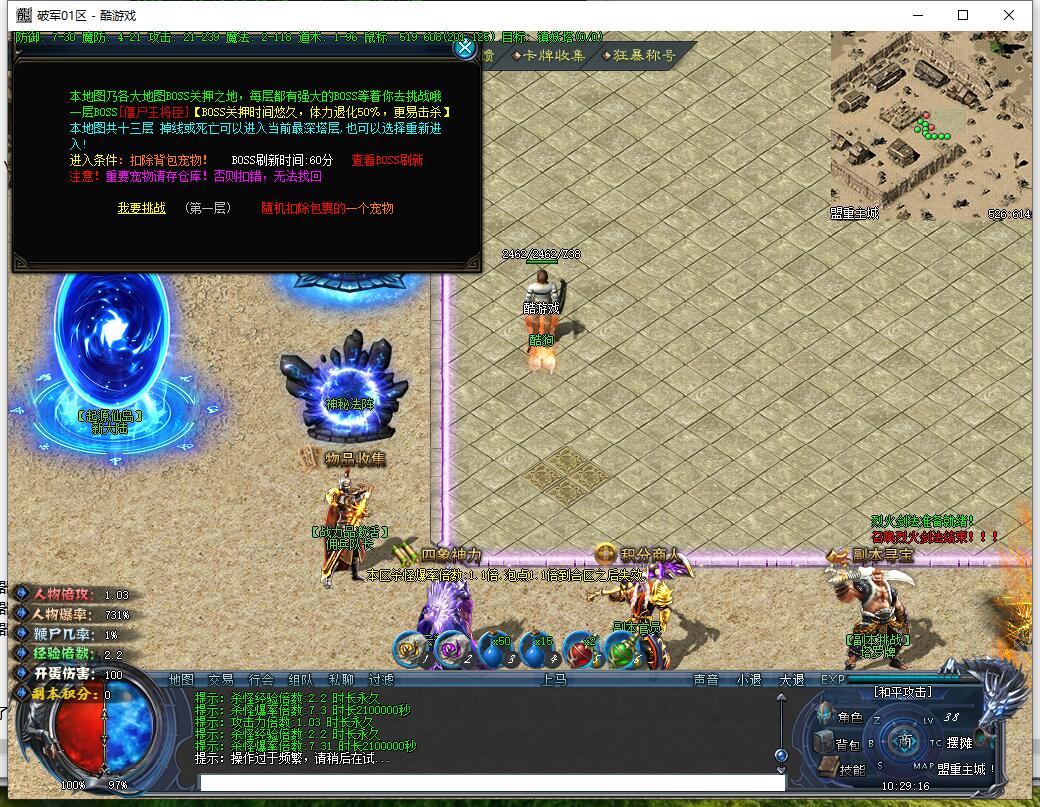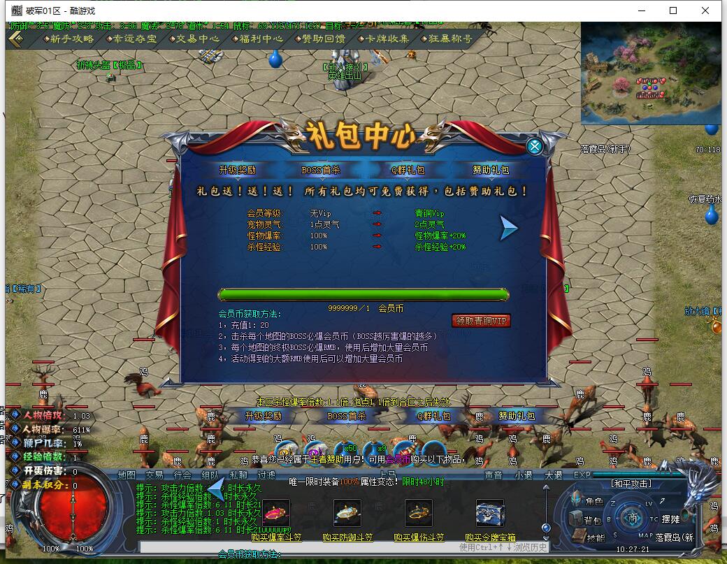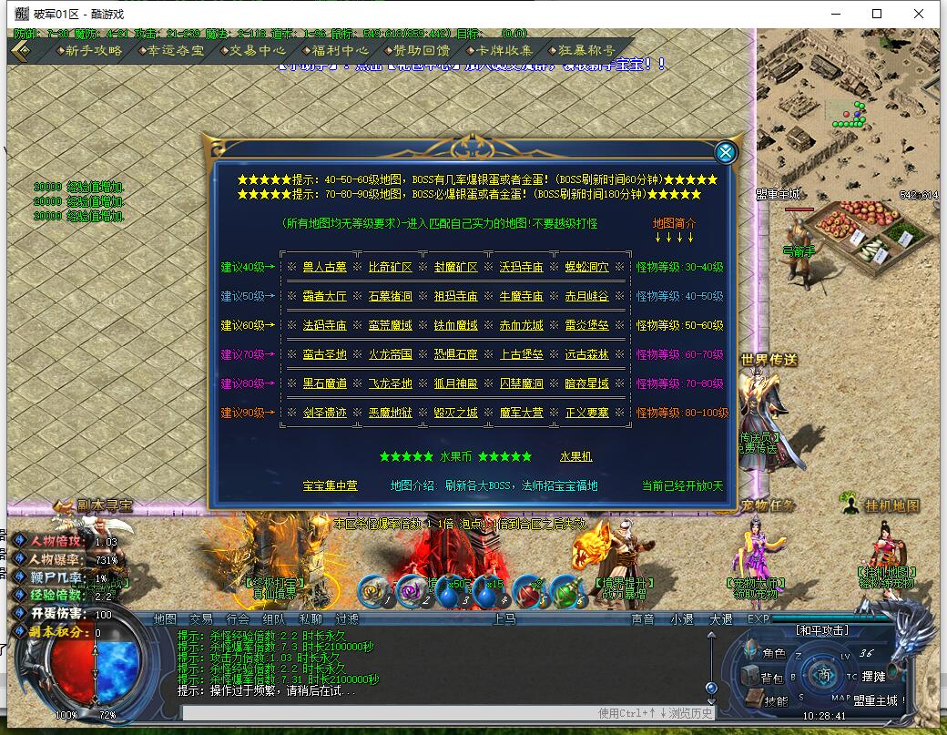 其它说明:怪物刷新:【BOSS】180分钟、精英60分钟、小怪60分钟刷新。