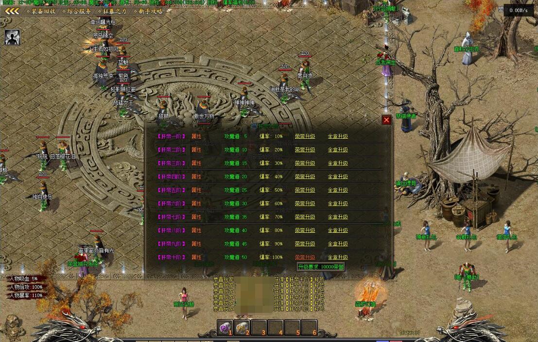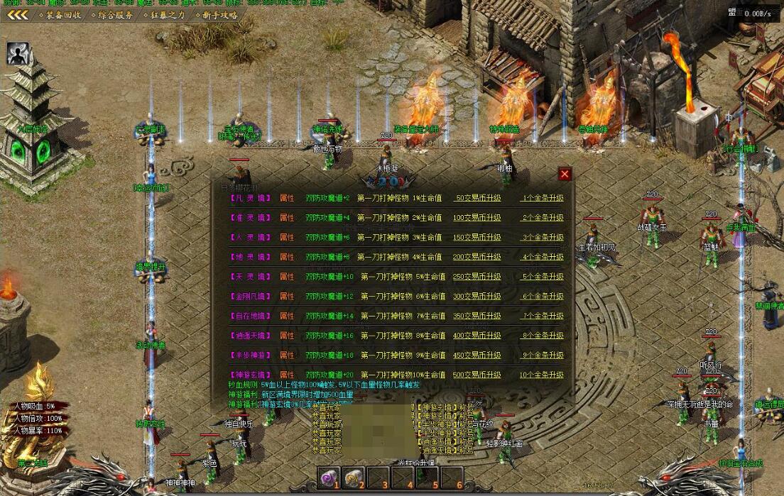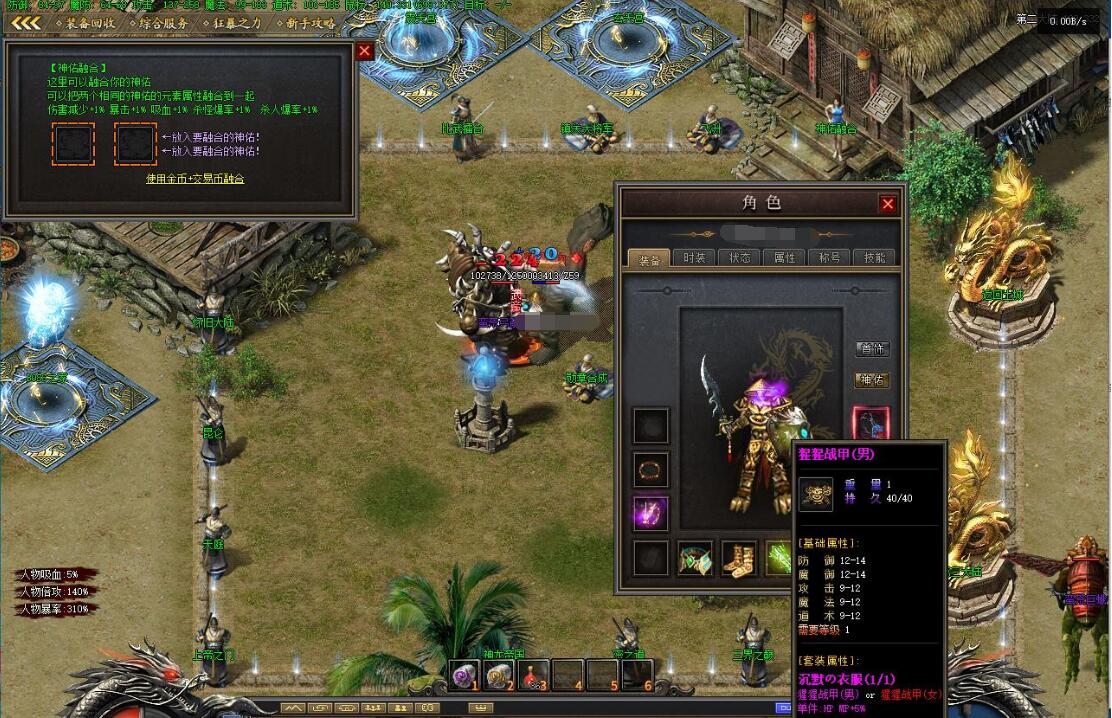 一阶段吸血:先攒金币买土城右下角的神豪礼包,能买5次增加5%吸血,打到神佑鉴定出吸血,前期吸血+麻痹+宝宝可以直接打紫怪、黄怪