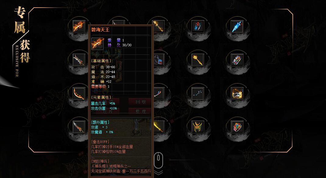 地阶武器:赤明天帝 魅影 七星烟雨 十全魔兵 碧海天王