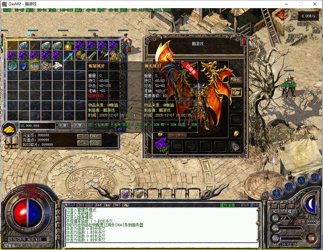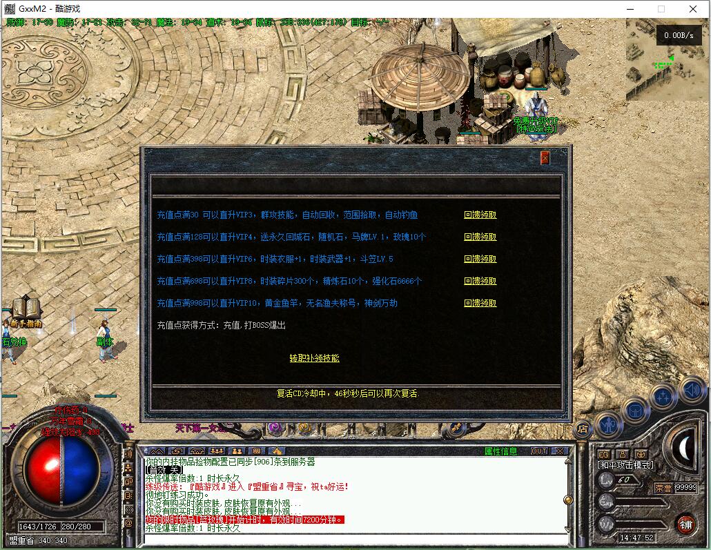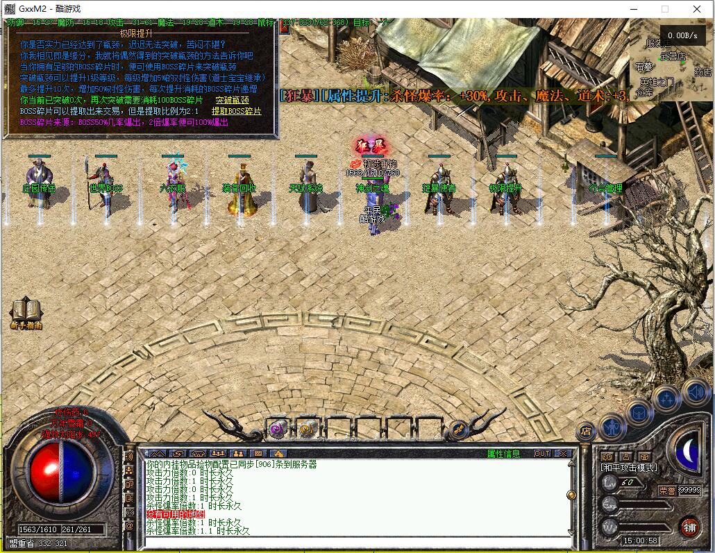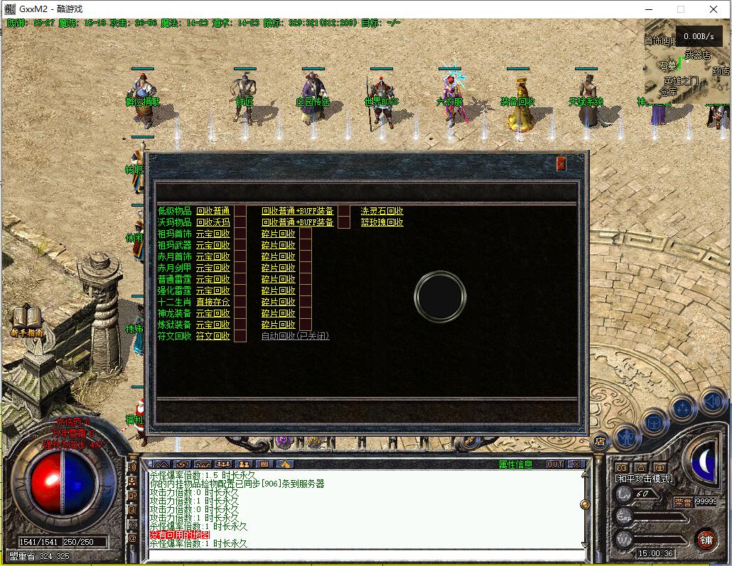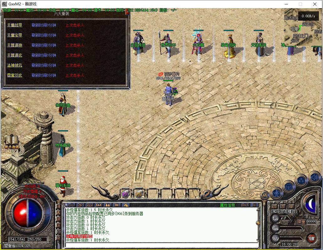 传奇游戏最新版本更新:新增智能挂机系统(入口位于综合服务内),优化所有怪物爆率(专属与材料爆率大幅提升),新增三个不爆物品,同步上线手写攻略(建议配合查询系统游玩,游戏难度适中)。增加元宝获取途径(杀怪即可获得元宝,适配后期高消耗需求),新增两个背包神器,调整金币获取规则(不同赞助等级对应不同获取量),金币回收倍率与赞助等级挂钩。修复3个剧情地图因不刷怪导致的中断问题,解决强化框不显示无法强化的故障,优化杀怪点变量及称号领取条件(一晚上可领完)。整理土城NPC布局(删除无用NPC,界面更整洁),新增GM可控真假爆率系统,优化人物初始攻速(非无限刀)。完成多处剧情地图问题修复与优化:赤沙龙城材料调整;剧情二四个NPC货币消耗、材料及概率优化(适配周服节奏);剧情三老者/尊者材料数量与成功率优化、老马猴/卖酒老头/定海神针合成修改、震天凯/穿针引线合成问题修复;云顶天宫进图条件调整,难度适当降低。