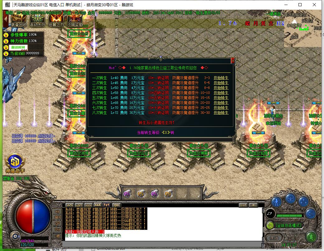 全民火龙单职业微变版本,纯散人服不花钱也可终极,一切靠打无合成,散人打金地图多怪物刷新速度快,装备货币保值,每日人品大爆发轻松300+收入。每天稳定四区开放(10:30 14:30 18:30 22:30),每个地图终极福利BOSS每晚22:01刷新,首区攻沙奖励RMB 588无封顶。市场最强封挂系统24小时接受举报,提醒设置二级密码防扫号。适度游戏益脑,拒绝盗版,享受健康生活。