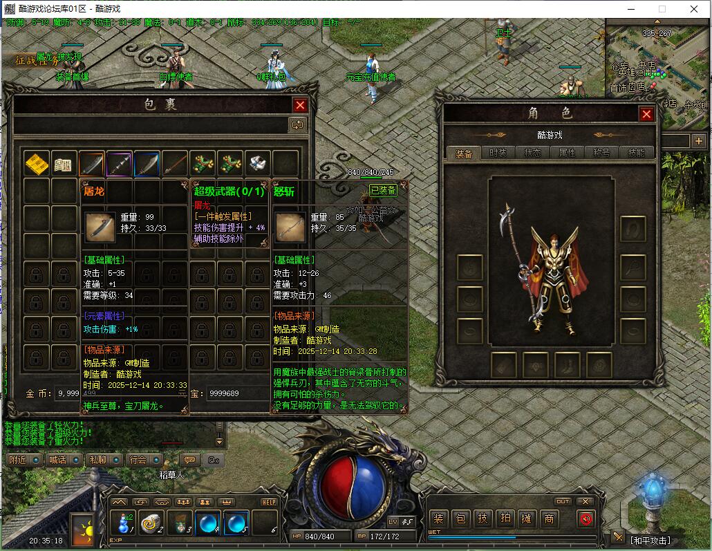 使用客户端连接服务器,创建角色并测试游戏功能是否正常
