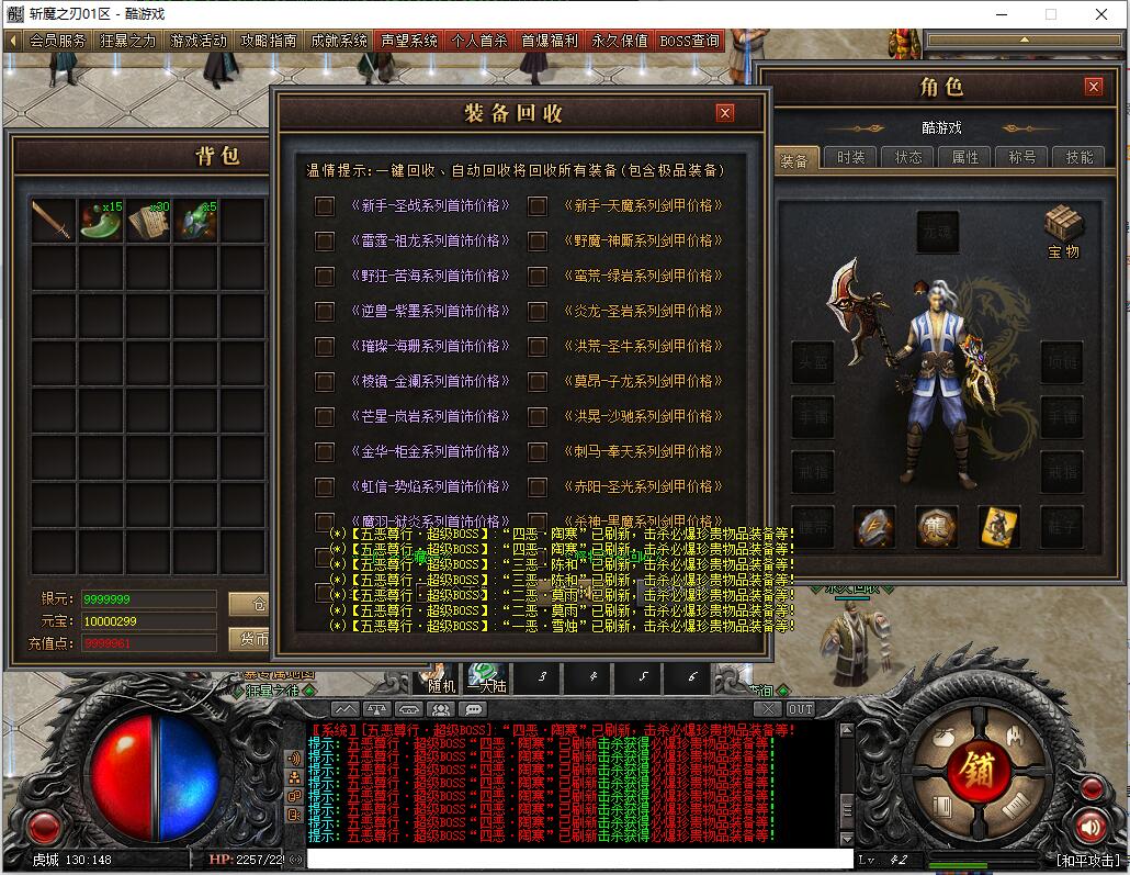 本服还原干净聊天框,无垃圾信息及回收提示,商铺不售材料全靠打怪,永久回收物品均由怪物爆出。游戏问题可QQ群联系客服完美解答,无论是否消费均用心服务,所有玩家公平对待。交易安全需通过商铺RMB点交易,提现手续费仅10%;私下交易一经查实封号并清除提现记录;禁止自动刷屏、骂人小号占安全区,违者警告或封号;严禁加速脱机外挂,发现必删永不解封。