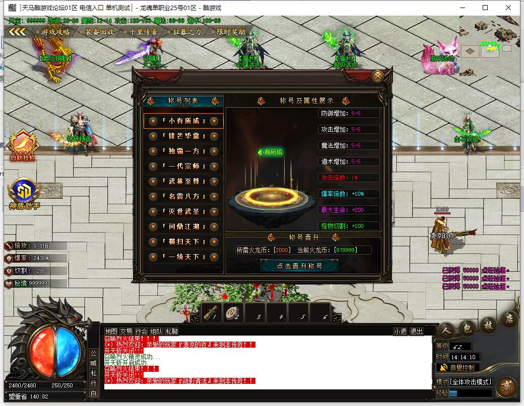 龙魂火龙II 绝学攻速微变单职业版 GOM引擎传奇游戏服务端