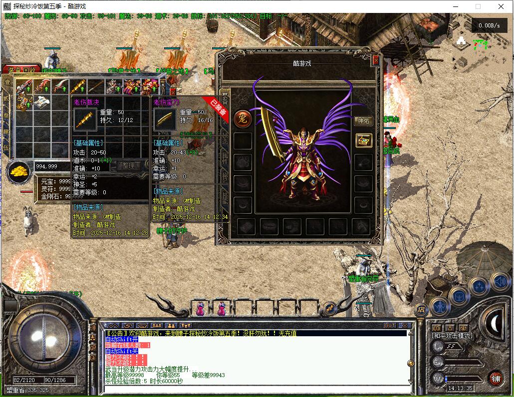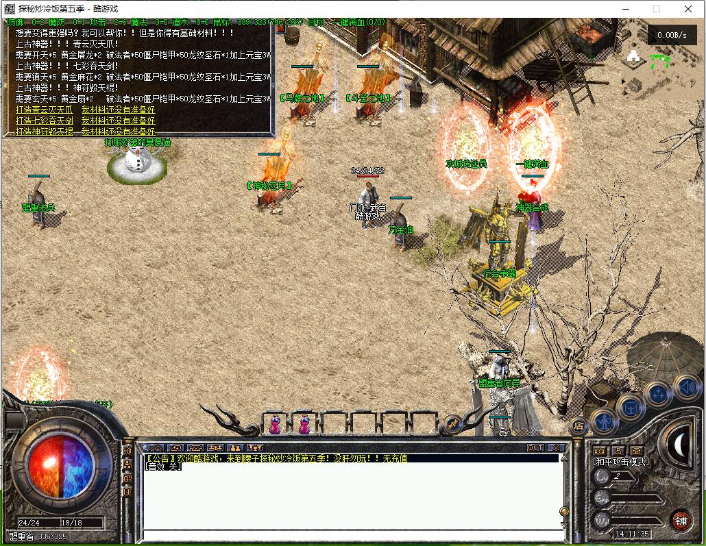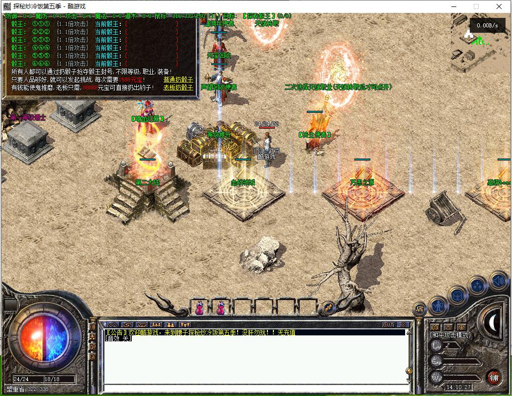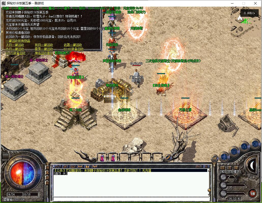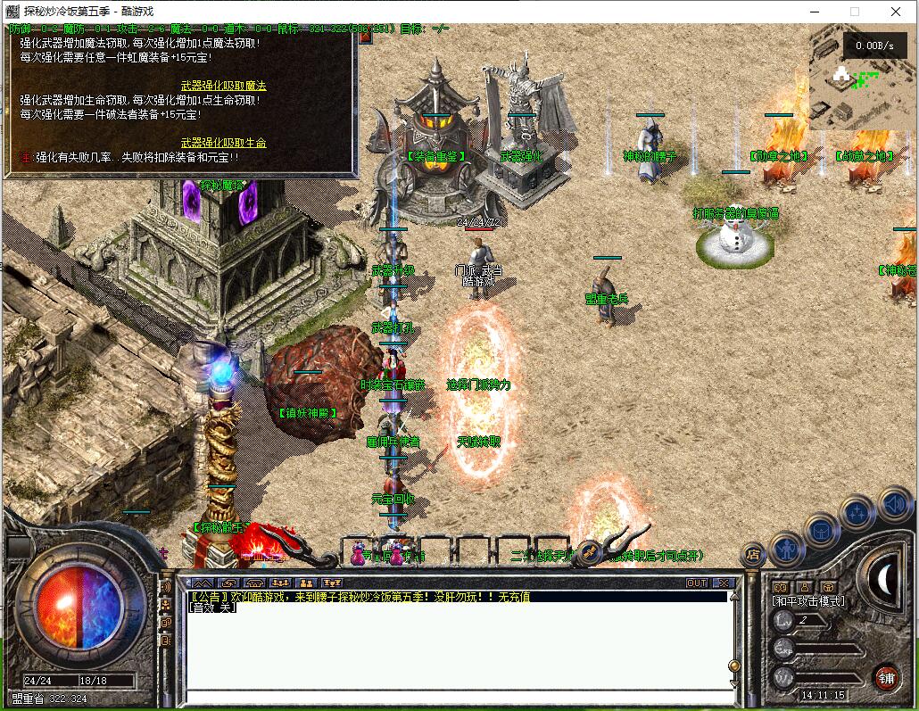 传奇游戏最新版本更新:新增智能挂机系统(入口位于综合服务内),优化所有怪物爆率(专属与材料爆率大幅提升),新增三个不爆物品,同步上线手写攻略(建议配合查询系统游玩,游戏难度适中)。增加元宝获取途径(杀怪即可获得元宝,适配后期高消耗需求),新增两个背包神器,调整金币获取规则(不同赞助等级对应不同获取量),金币回收倍率与赞助等级挂钩。修复3个剧情地图因不刷怪导致的中断问题,解决强化框不显示无法强化的故障,优化杀怪点变量及称号领取条件(一晚上可领完)。整理土城NPC布局(删除无用NPC,界面更整洁),新增GM可控真假爆率系统,优化人物初始攻速(非无限刀)。完成多处剧情地图问题修复与优化:赤沙龙城材料调整;剧情二四个NPC货币消耗、材料及概率优化(适配周服节奏);剧情三老者/尊者材料数量与成功率优化、老马猴/卖酒老头/定海神针合成修改、震天凯/穿针引线合成问题修复;云顶天宫进图条件调整,难度适当降低。