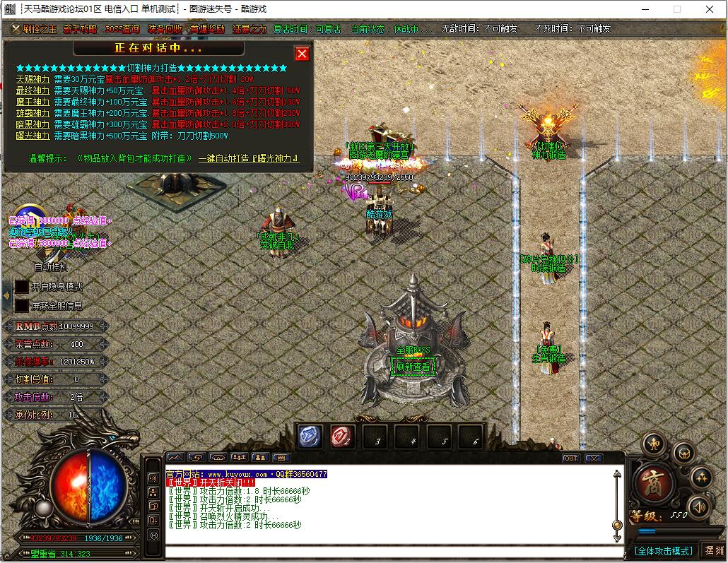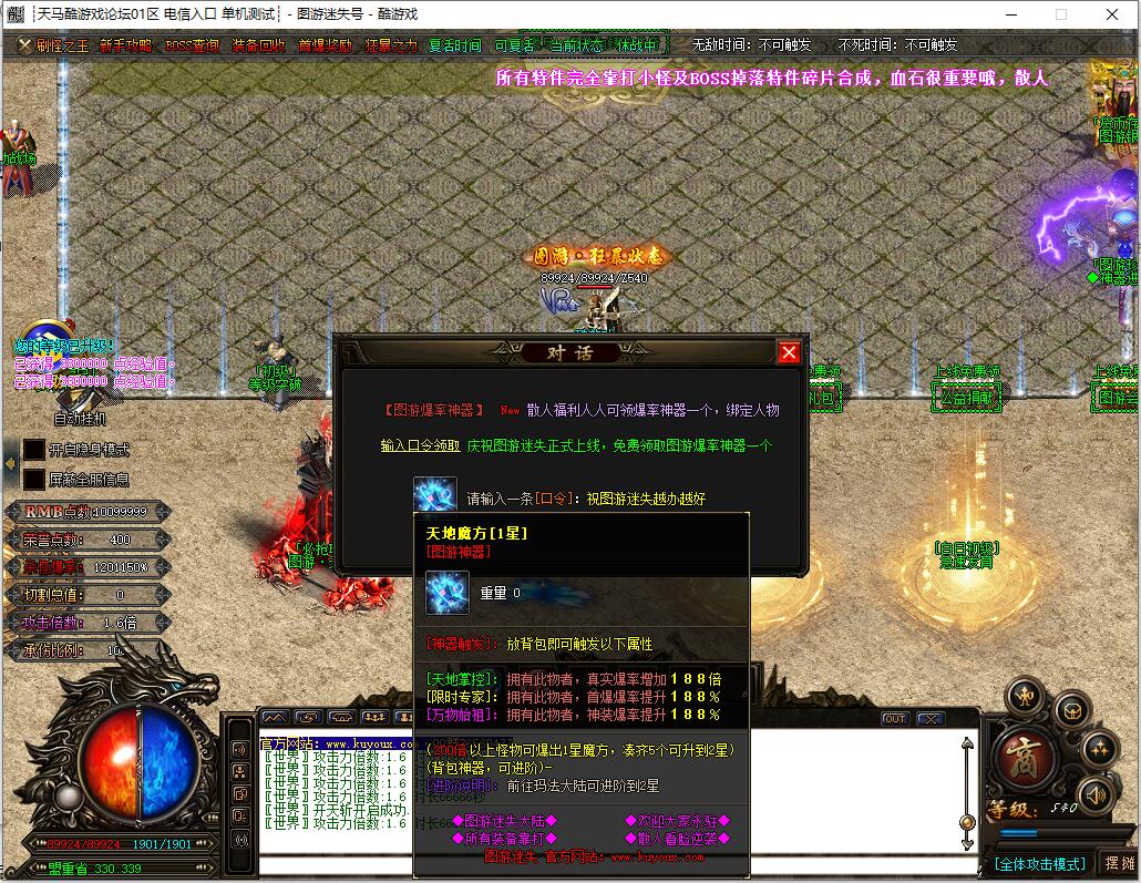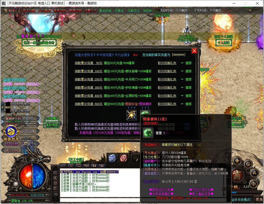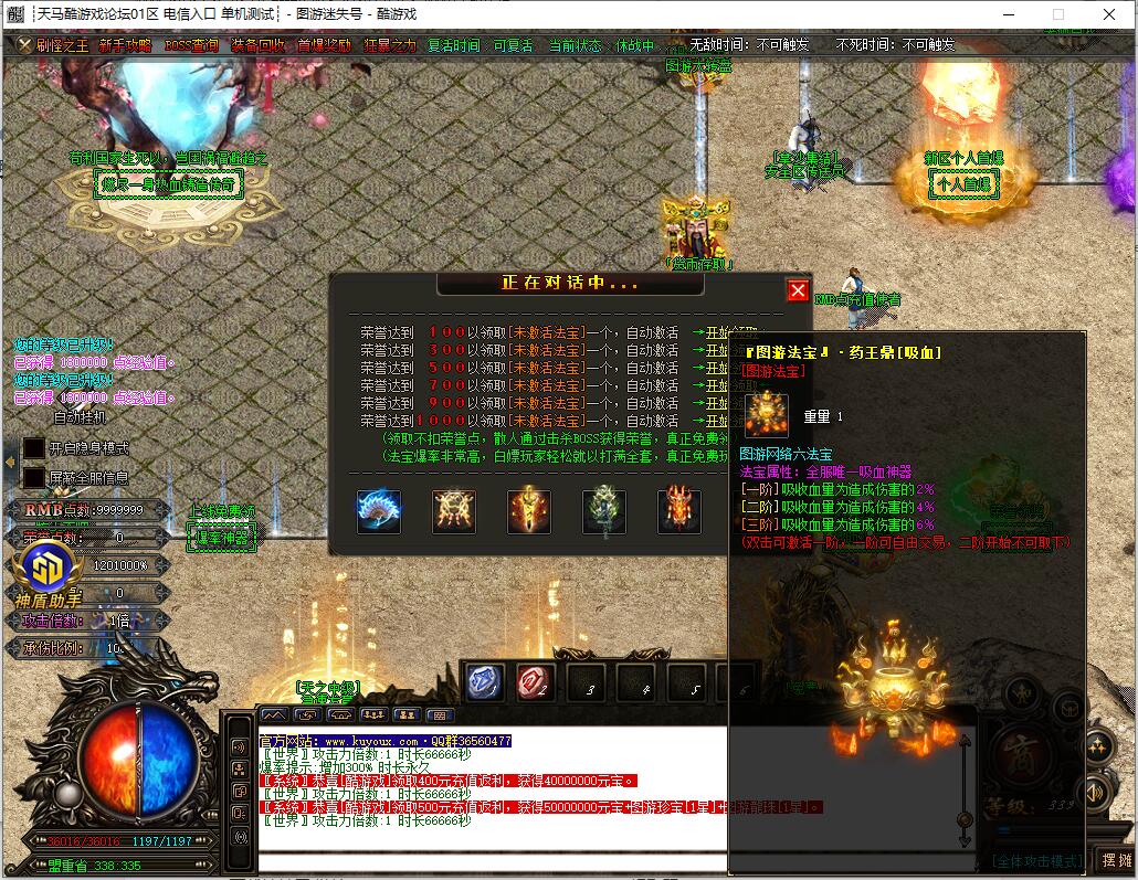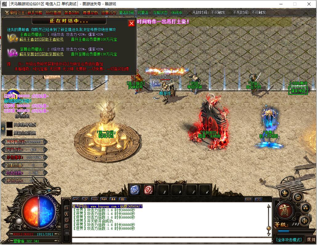 全民火龙单职业微变版本,纯散人服不花钱也可终极,一切靠打无合成,散人打金地图多怪物刷新速度快,装备货币保值,每日人品大爆发轻松300+收入。每天稳定四区开放(10:30 14:30 18:30 22:30),每个地图终极福利BOSS每晚22:01刷新,首区攻沙奖励RMB 588无封顶。市场最强封挂系统24小时接受举报,提醒设置二级密码防扫号。适度游戏益脑,拒绝盗版,享受健康生活。