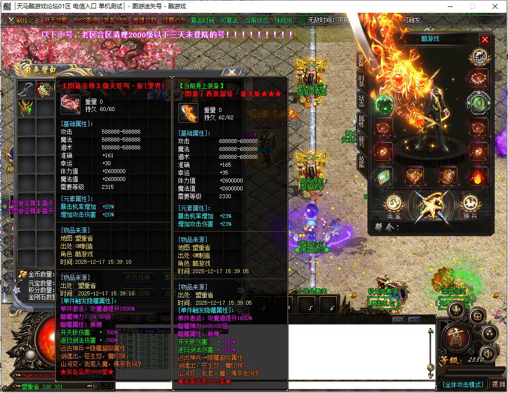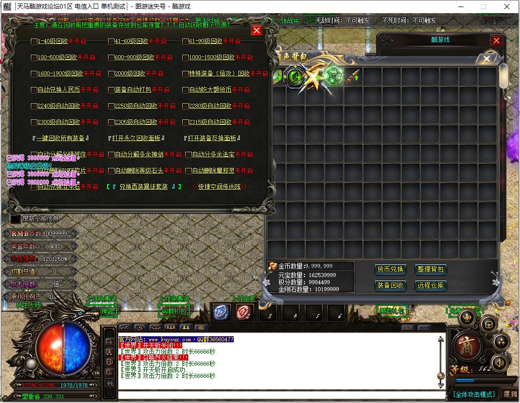 本服还原干净聊天框,无垃圾信息及回收提示,商铺不售材料全靠打怪,永久回收物品均由怪物爆出。游戏问题可QQ群联系客服完美解答,无论是否消费均用心服务,所有玩家公平对待。交易安全需通过商铺RMB点交易,提现手续费仅10%;私下交易一经查实封号并清除提现记录;禁止自动刷屏、骂人小号占安全区,违者警告或封号;严禁加速脱机外挂,发现必删永不解封。