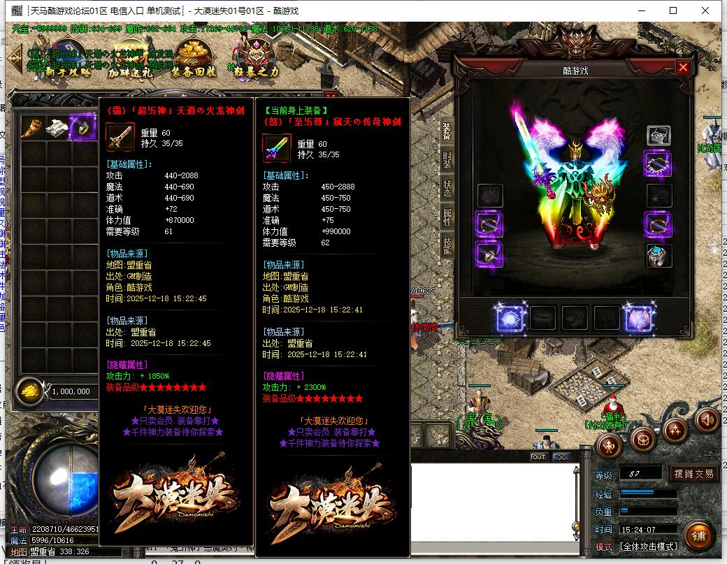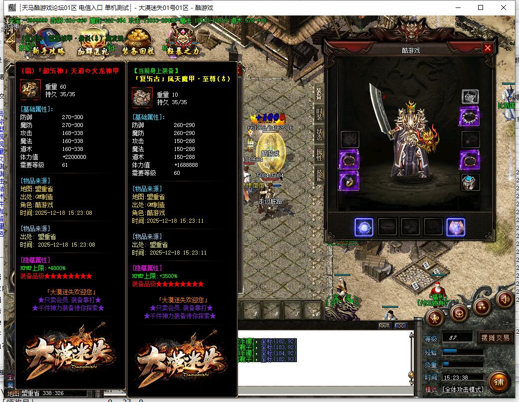 本服还原干净聊天框,无垃圾信息及回收提示,商铺不售材料全靠打怪,永久回收物品均由怪物爆出。游戏问题可QQ群联系客服完美解答,无论是否消费均用心服务,所有玩家公平对待。交易安全需通过商铺RMB点交易,提现手续费仅10%;私下交易一经查实封号并清除提现记录;禁止自动刷屏、骂人小号占安全区,违者警告或封号;严禁加速脱机外挂,发现必删永不解封。