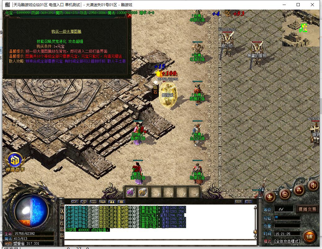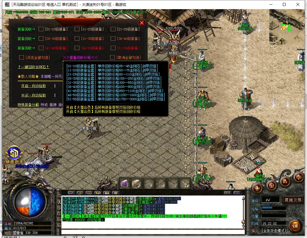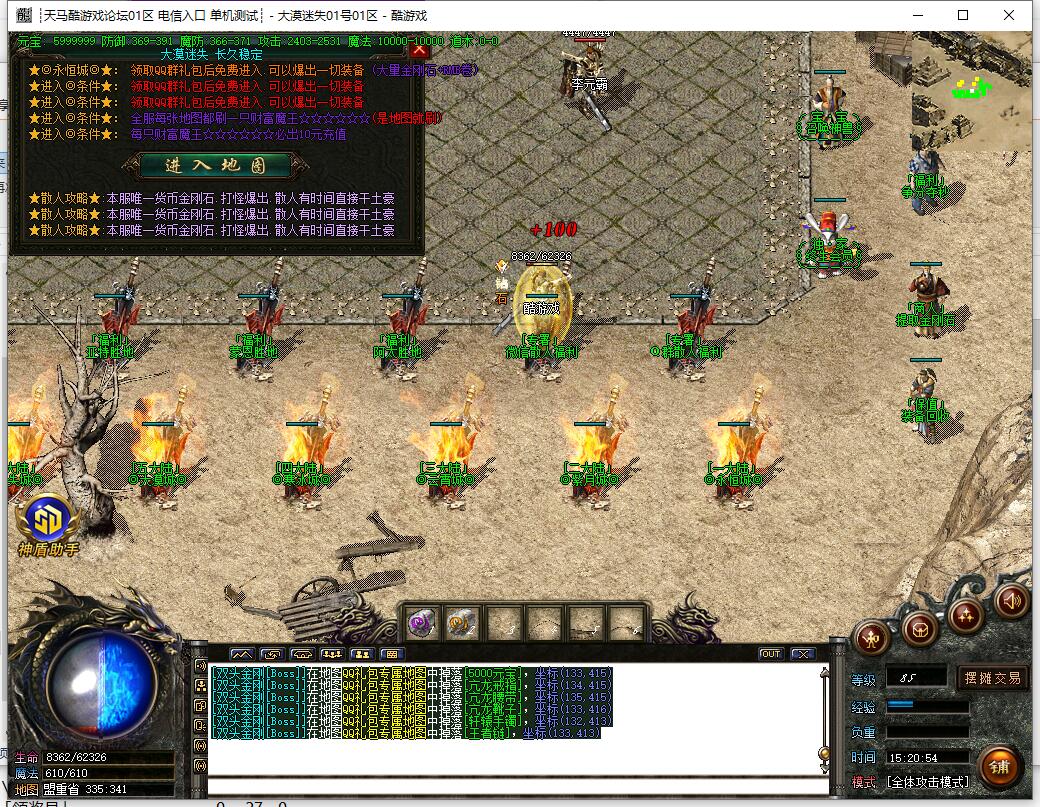 全民火龙单职业微变版本,纯散人服不花钱也可终极,一切靠打无合成,散人打金地图多怪物刷新速度快,装备货币保值,每日人品大爆发轻松300+收入。每天稳定四区开放(10:30 14:30 18:30 22:30),每个地图终极福利BOSS每晚22:01刷新,首区攻沙奖励RMB 588无封顶。市场最强封挂系统24小时接受举报,提醒设置二级密码防扫号。适度游戏益脑,拒绝盗版,享受健康生活。
