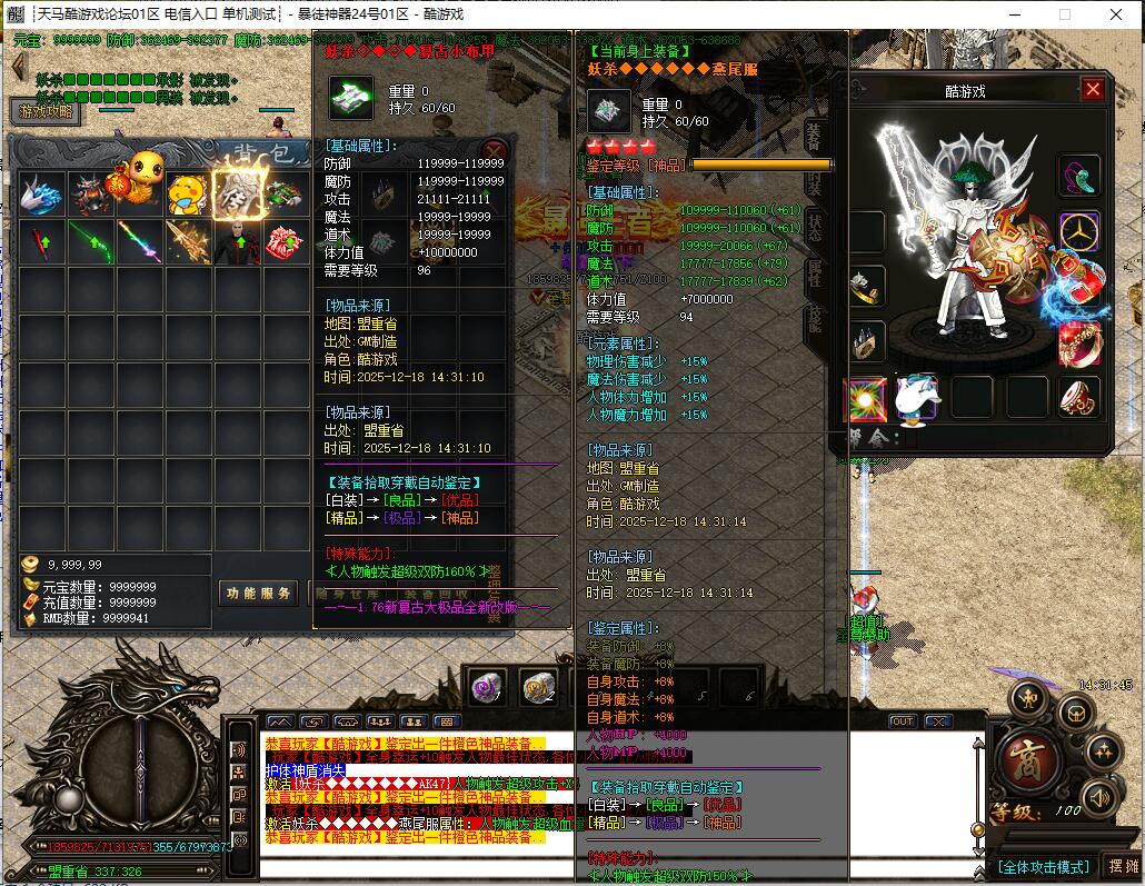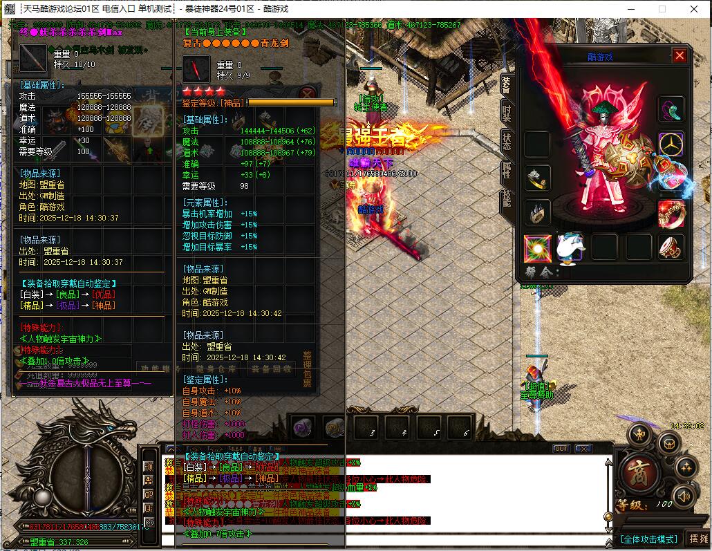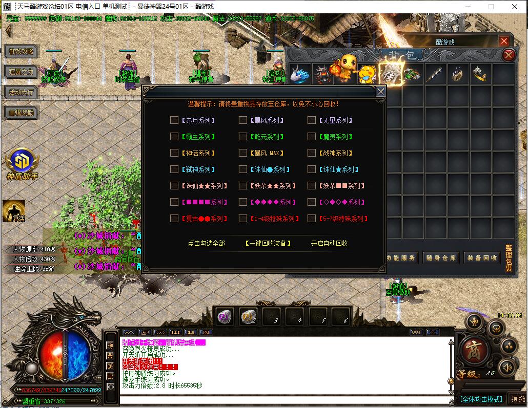 本服还原干净聊天框,无垃圾信息及回收提示,商铺不售材料全靠打怪,永久回收物品均由怪物爆出。游戏问题可QQ群联系客服完美解答,无论是否消费均用心服务,所有玩家公平对待。交易安全需通过商铺RMB点交易,提现手续费仅10%;私下交易一经查实封号并清除提现记录;禁止自动刷屏、骂人小号占安全区,违者警告或封号;严禁加速脱机外挂,发现必删永不解封。