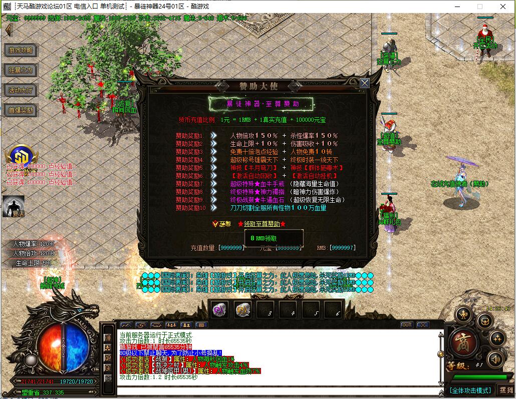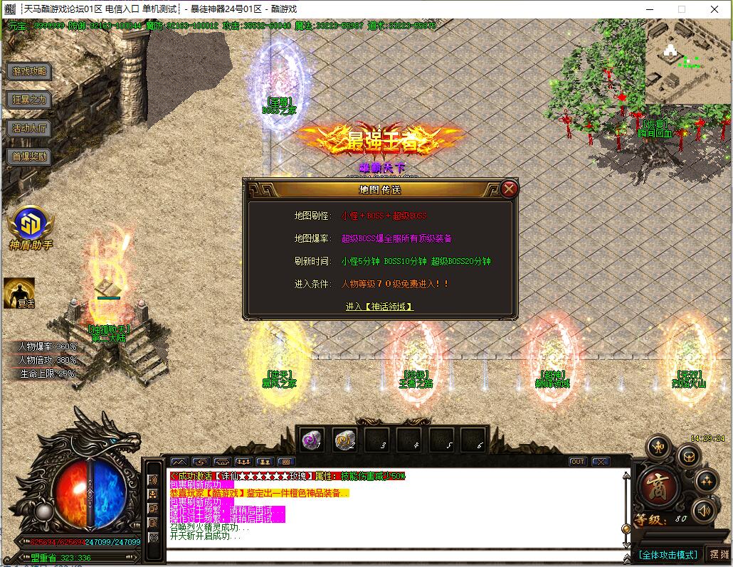 全民火龙单职业微变版本,纯散人服不花钱也可终极,一切靠打无合成,散人打金地图多怪物刷新速度快,装备货币保值,每日人品大爆发轻松300+收入。每天稳定四区开放(10:30 14:30 18:30 22:30),每个地图终极福利BOSS每晚22:01刷新,首区攻沙奖励RMB 588无封顶。市场最强封挂系统24小时接受举报,提醒设置二级密码防扫号。适度游戏益脑,拒绝盗版,享受健康生活。