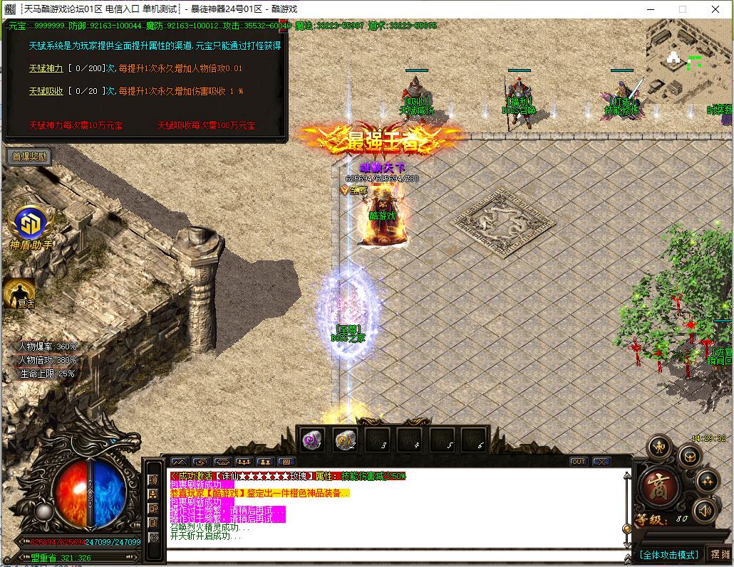 2024独家全新传奇版本,巨资推广专注人气聚集,充值比例1:1公平消费。每日五区滚动开放(10:30/13:30/16:30/19:30/22:30),新区火爆人气爆棚。全装备怪物爆率无保留,物品来源完全透明,公平爆装系统;重金定制GK反外挂系统,全面封禁外挂/加速/辅助,打造绿色公平环境。每日五区连开人气霸屏,次日合区第三天统一攻沙,激情PK体验。装备全靠野外爆出无商城售卖,投入时间可享爆装乐趣与收益;每日重金广告投放,主播平台+发布站全渠道推荐高人气保障。郑重声明:无充值比例/优惠不卖装备,公平无黑幕;防盗提示:不设二级密码保护账号安全谨防诈骗。