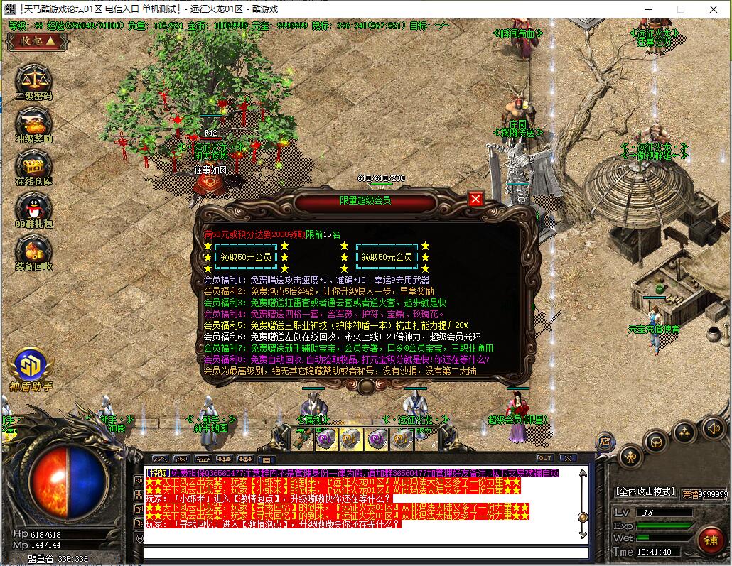 前期强力建议玩道士,因为会员道士可以召唤会员宝宝+等级宝宝或两个会员宝宝,而法师和战士只能召唤一只会员宝宝。