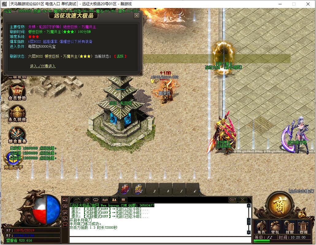 迷失单职业[独家版本激情无限]是一款人气大服传奇游戏,装备、等级轻松获取,上线即可直接PK,无需充值,不花一分钱即可畅玩,支持无线刷元宝、无充值直接领取顶赞,封挂稳定长期,采用无GM管理模式。QQ①群:易玩版本库。抵制不良游戏,拒绝盗版游戏,注意自身保护,谨防受骗上当,适度游戏益脑,沉迷游戏伤身,合理安排时间,享受健康生活。