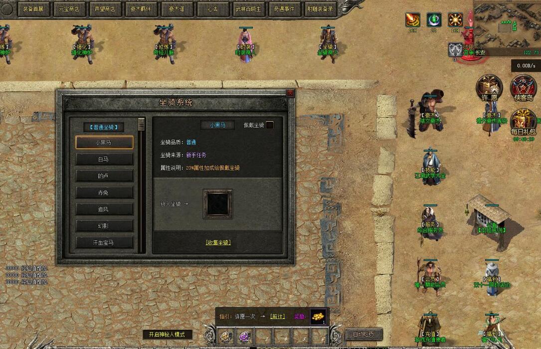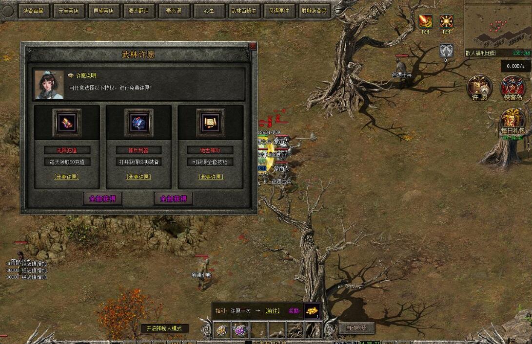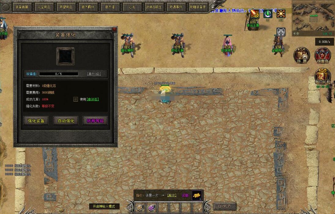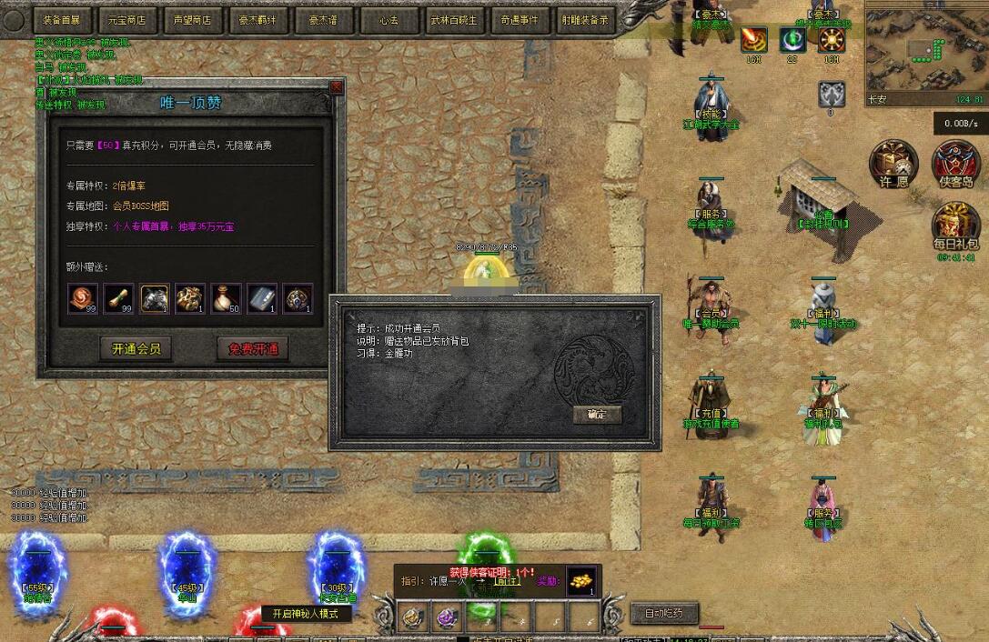 注意:打死小怪从200分之一加1点声望改为100%加一点声望。增加元宝兑换声望。