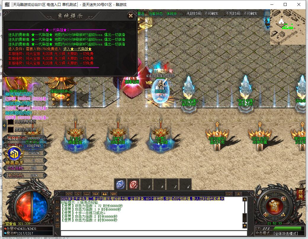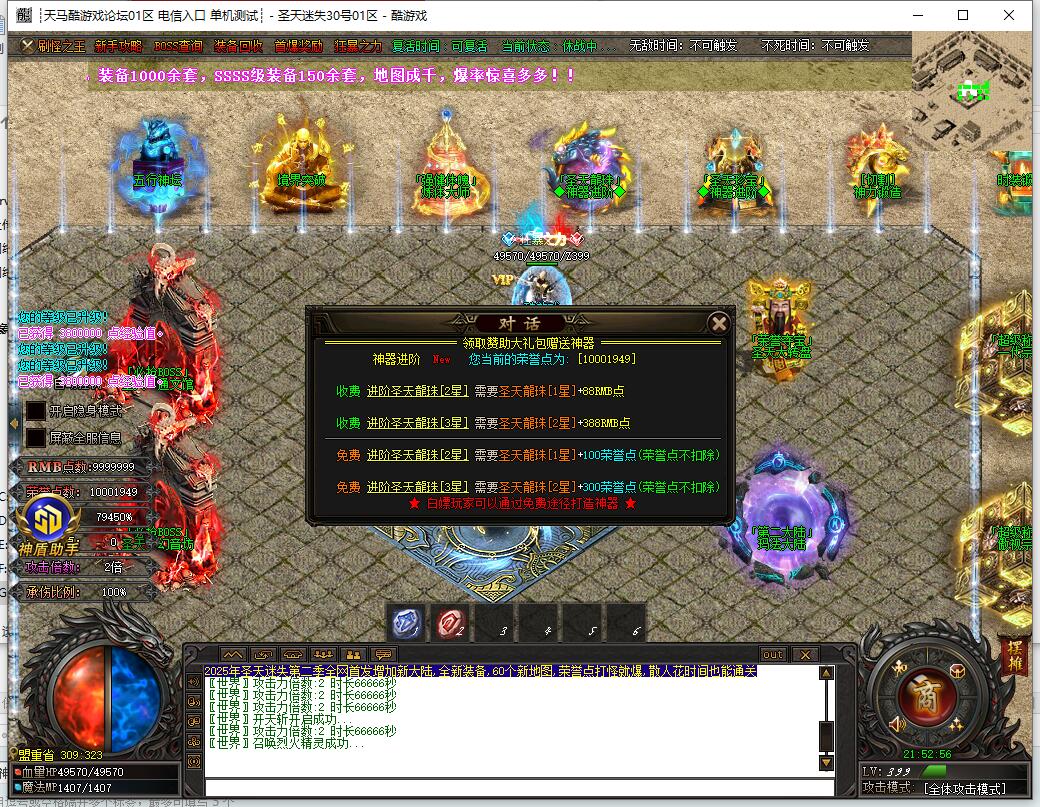 2024独家全新传奇版本,巨资推广专注人气聚集,充值比例1:1公平消费。每日五区滚动开放(10:30/13:30/16:30/19:30/22:30),新区火爆人气爆棚。全装备怪物爆率无保留,物品来源完全透明,公平爆装系统;重金定制GK反外挂系统,全面封禁外挂/加速/辅助,打造绿色公平环境。每日五区连开人气霸屏,次日合区第三天统一攻沙,激情PK体验。装备全靠野外爆出无商城售卖,投入时间可享爆装乐趣与收益;每日重金广告投放,主播平台+发布站全渠道推荐高人气保障。郑重声明:无充值比例/优惠不卖装备,公平无黑幕;防盗提示:不设二级密码保护账号安全谨防诈骗。