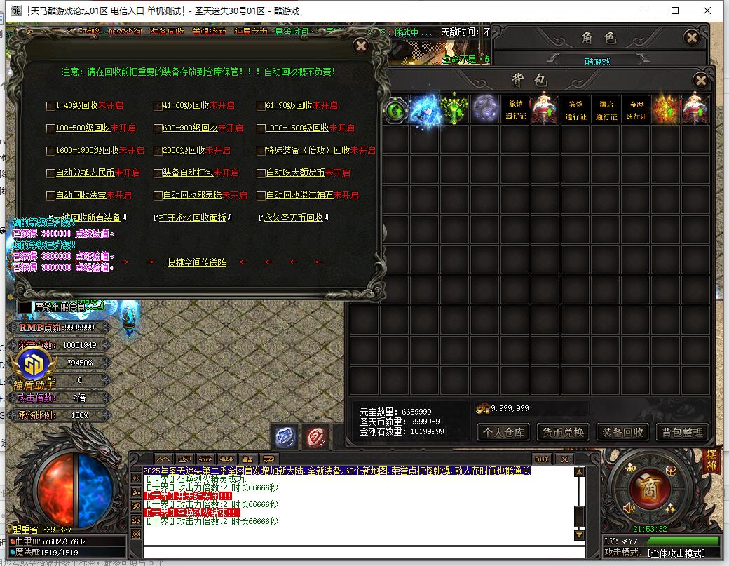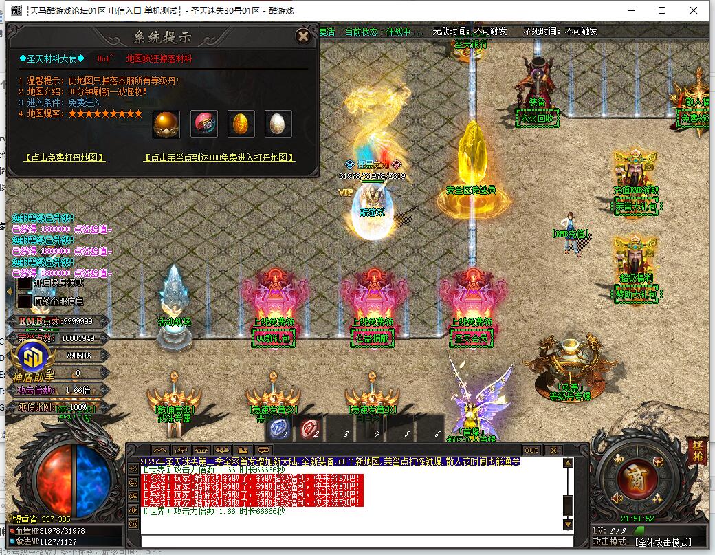 全民火龙单职业微变版本,纯散人服不花钱也可终极,一切靠打无合成,散人打金地图多怪物刷新速度快,装备货币保值,每日人品大爆发轻松300+收入。每天稳定四区开放(10:30 14:30 18:30 22:30),每个地图终极福利BOSS每晚22:01刷新,首区攻沙奖励RMB 588无封顶。市场最强封挂系统24小时接受举报,提醒设置二级密码防扫号。适度游戏益脑,拒绝盗版,享受健康生活。