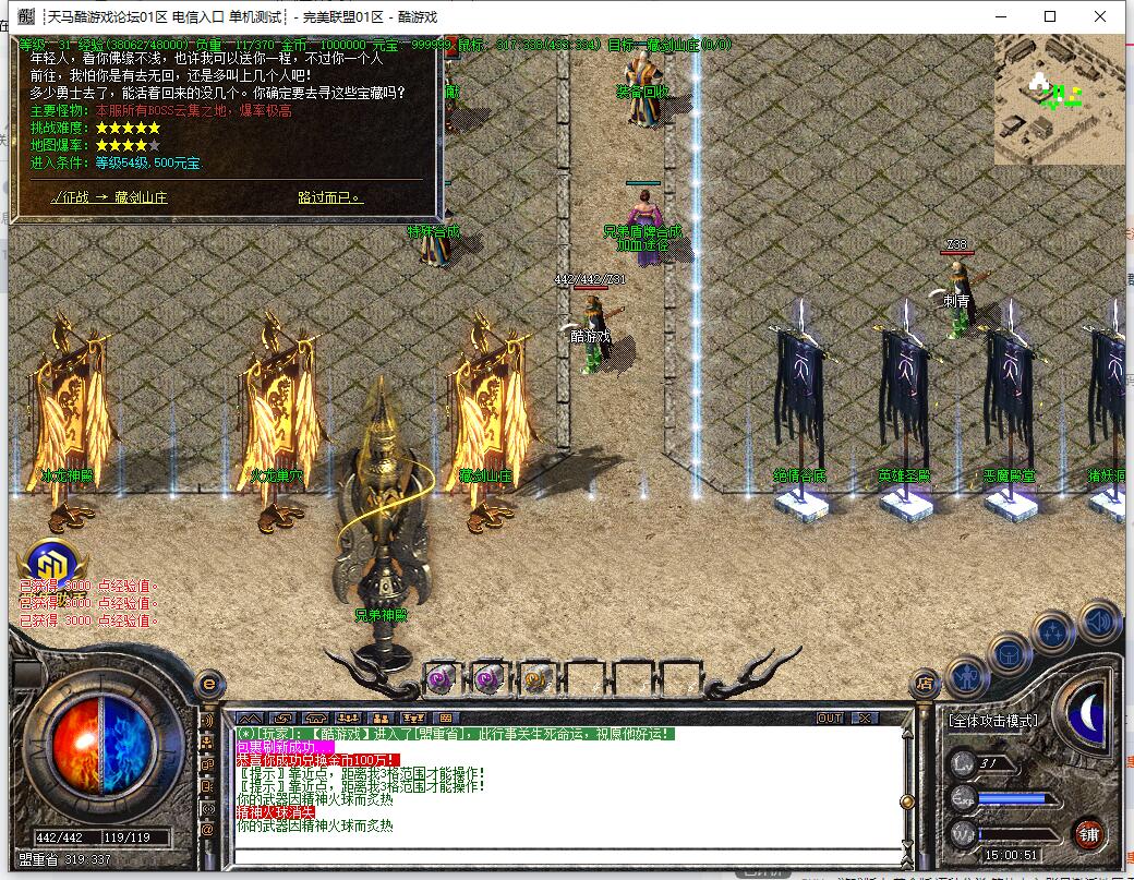 活动开始后,地图中间刷新两只顶级BOSS,击杀它们可爆出神秘福利。