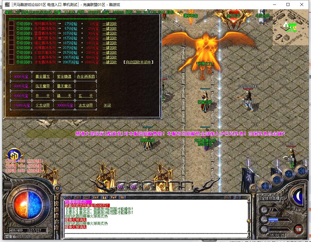 本服还原干净聊天框,无垃圾信息及回收提示,商铺不售材料全靠打怪,永久回收物品均由怪物爆出。游戏问题可QQ群联系客服完美解答,无论是否消费均用心服务,所有玩家公平对待。交易安全需通过商铺RMB点交易,提现手续费仅10%;私下交易一经查实封号并清除提现记录;禁止自动刷屏、骂人小号占安全区,违者警告或封号;严禁加速脱机外挂,发现必删永不解封。