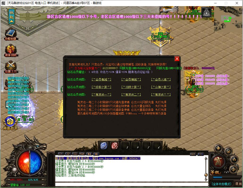版本简单介绍:奔赴所有装备怪物掉落,—个会员玩遍全服,金刚石只能打打包地图路线及合区拿沙说明建议前期先打小BOSS,获的装备、金刚石、元宝、材料碎片,先把血里搞上来.在去挑战大BOSS上线领取群礼包获得施毒术+召唤葫芦娃宠物.自动捻取,小退生效.只要有耐心一样可以起飞友情提示:本服与市面上大部分迷失版本不同,进游戏先搞称号.切割.时装.四格特殊.最后神力勋章元素介绍:本服所有装备元素都是自带的,无元素洗练.元素推荐:忽视,攻击,防御,体力复古怪物:复古大陆新怪物,攻击力强悍,需要人物物理伤害减少908以上比较轻松伤害减少:龙帅切割加50%,终极四格每件加25%,时装加35%,新增渡劫抗怪属性爆棚〉复古大陆查看五季更新:土城增加100级以上装备回收,请在土城左下角C查看增加装备一套,具体属性请玩家自行探索增加渡劫MPC,增加渡劫伤害吸收,增加渡劫切割,只对复古怪物有效,复古大陆查看增加渡劫地图·怪物刷新时间20分钟,不在为元宝而发愁,越后面地图刷新越快.元宝越快修改四季BUPF装备,全部修改为特殊四格装备带BUFF.增加新装备套装属性,防BUFF和倍攻新增挂机强悍系统,挂机保护.见人就飞.自动吸怪.自动修护.自动兑换元宝蛋.挂机永久不掉线,元宝永久不怕爆,请在装备回收页面查看装备介绍.共计3O00件特殊神器装备.全部靠打.任何BOSS都有几率爆出.一切看脸.无合成装备介绍.共计30o0件特殊神器装备.全部靠打.任何BOSS都有几率爆出.一切看脸.无合成本服虽势:无回溃. 无赞助.只卖会员.只要有时间以上全部免费获得.只能打怪爆出.无任何合成版本简单介绍:奔赴所有装备怪物掉落,—个会员玩遍全服,金刚石只能打打包地图路线及合区拿沙说明建议前期先打小BOSS,获的装备、金刚石、元宝、材料碎片,先把血里搞上来.在去挑战大BOSS上线领取群礼包获得施毒术+召唤葫芦娃宠物.自动捻取,小退生效.只要有耐心一样可以起飞友情提示:本服与市面上大部分迷失版本不同,进游戏先搞称号.切割.时装.四格特殊.最后神力勋章元素介绍:本服所有装备元素都是自带的,无元素洗练.元素推荐:忽视,攻击,防御,体力复古怪物:复古大陆新怪物,攻击力强悍,需要人物物理伤害减少908以上比较轻松伤害减少:龙帅切割加50%,终极四格每件加25%,时装加35%,新增渡劫抗怪属性爆棚〉复古大陆查看五季更新:土城增加100级以上装备回收,请在土城左下角C查看增加装备一套,具体属性请玩家自行探索增加渡劫MPC,增加渡劫伤害吸收,增加渡劫切割,只对复古怪物有效,复古大陆查看增加渡劫地图·怪物刷新时间20分钟,不在为元宝而发愁,越后面地图刷新越快.元宝越快修改四季BUPF装备,全部修改为特殊四格装备带BUFF.增加新装备套装属性,防BUFF和倍攻新增挂机强悍系统,挂机保护.见人就飞.自动吸怪.自动修护.自动兑换元宝蛋.挂机永久不掉线,元宝永久不怕爆,请在装备回收页面查看装备介绍.共计3O00件特殊神器装备.全部靠打.任何BOSS都有几率爆出.一切看脸.无合成装备介绍.共计30o0件特殊神器装备.全部靠打.任何BOSS都有几率爆出.一切看脸.无合成本服虽势:无回溃. 无赞助.只卖会员.只要有时间以上全部免费获得.只能打怪爆出.无任何合成