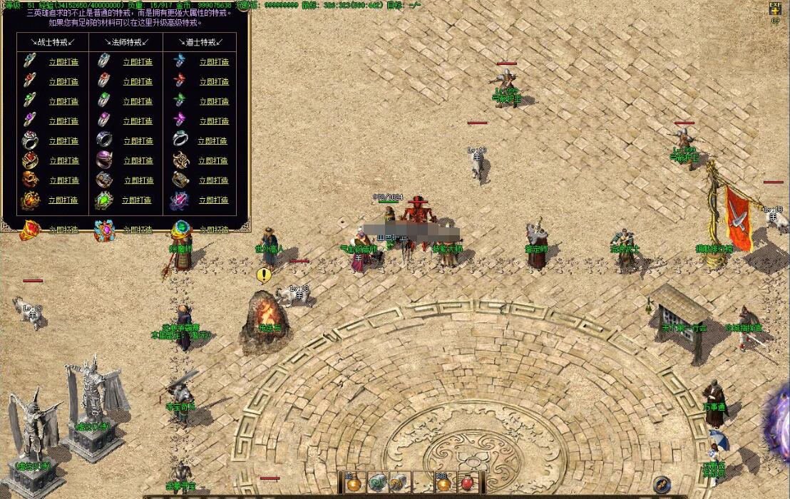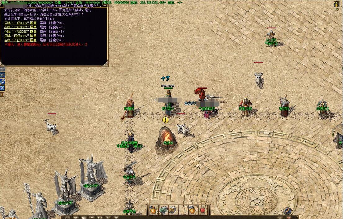 游戏介绍:上线等级1,金币30000小提示:服务器设置开区“3”天后集体攻城,攻城奖励请查看@帮助。小提示:本服属于全新独家版本,市面上仅此一家,团队对版本精益求精,希望大家能玩的愉快!小提示:如果不需要背景音乐的话请按F12--基本设置--背景音乐:取消勾选即可。小提示:显示“已绑定”的装备或者物品,是无法修理、无法交易、丢弃消失的。请大家注意!!!小提示:法师的雷电术对道士的宝宝有着额外的伤害,具体请大家自行摸索。小提示:为解决法师起步难的问题,增加召唤灵宠系统,且每张地图均有可诱惑怪物!小提示:本游戏所有常规装备都靠怪物爆出,完全无合成,不过要小心BOSS可是非常强悍的!小提示:为了方便所有玩家能够随时随地进行盗墓活动,你可以输入命令“@盗墓”加入盗墓!小提示:沙漠土城“技能大师”处可以查看最新修炼技能,只要你有足够的“书页残卷”。小提示:“传送通行证”是通往中后期地图证明,只能打BOSS获得,偷偷的告诉你,弓箭护卫也爆。小提示:沙漠土城“流浪武士”可以分配刀魂属性,后期可是非常有用的哦。小提示:本游戏设定120级封顶,升级可以靠手动升级,泡点、天关、押镖、回收。小提示:增加“温泉泡点”活动,每隔2小时举行一次,海量经验。具体查看:点开任务按钮查看。小提示:请长期游戏的玩家设立二级密码来保护你的帐号。本游戏对于一切盗号借号损失不负责。小提示:新开放十二生肖奇门遁甲,你可以到“女娲石像”处查看,可以在万事通杂货店修理。小提示:使用小号当仓库的,请把小号等级练到60级以上。否则合区的时候会被清理掉。小提示:万事通处服务很多,建议大家多多看看万事通,你一定用的上的。小提示:本服的武器幸运值和装备米素都可以传承的,请大家尽管放心强化和升级。小提示:沙漠土城“鉴定石”处可以进行装备鉴定,鉴定后可以随机增加属性哦,装备一共有六个品级哦。小提示:本服特色系统,道士BB伤害会跟随主人的道士属性而产生变化,70级可召唤2只至尊麒麟哦!刀魂系统介绍@刀魂系统介绍 装备列表详情@装备列表详情。 游戏命令大全@游戏命令大全宝箱详细介绍@宝箱详细介绍! 游戏活动介绍@游戏活动介绍 二级密码作用@二级密码作用?必看游戏规则@必看游戏规则 游戏卡顿黑屏@游戏卡顿黑屏? 幸运具体说明@幸运具体说明!传送通行证说明@传送通行证说明 紫禁城攻城相关@紫禁城攻城相关?新手如何快速升级?@新手如何快速升级? 如何快速获得金币?@如何快速获得金币? 如何正确选择职业?@如何正确选择职业?米素幸运如何传承?@米素幸运如何传承? "已绑定"代表什么?@"已绑定"代表什么。以下是本服所有装备列表和属性对比:55级装备<58级装备<61级装备<64级装备<3转装备<4转装备<5转装备<6转装备<7转装备<8转装备<9转装备<10转装备<11转装备<12转装备<13转装备<14转装备[@法师诱惑宝宝说明!]法师在本游戏内可以充分发挥诱惑之光技能的用途,法师只要可以诱惑的怪物列表请查看“宝宝寄存”处。目前法师只允许召唤5只宝宝,建议玩家召唤天关内的怪物做为宝宝,因为那里的宝宝都是无视防御。不过自身也没有1点防御。[@刀魂系统介绍]每件武器都能开启刀魂,开启后刀魂会在人物获得经验时同时吸取经验。刀魂每升1级会增加1点刀魂值。最高可以升级到120级。刀魂值的作用就是给武器强化属性,具体请到沙漠武土城找“流浪武士”查看。玩家60级后佩戴武器自动开启刀魂系统,到后期可是非常有作用的。而且刀魂是可以传承的。[@宝箱详细介绍!]宝箱来源:天关获得宝箱分类:神秘宝箱宝箱作用:可开出大量材料。开启要求:无需要求直接开启。[@材料来源和用途]锻造材料:用于合成装备材料。法师之星,道士之星,勇士之星,天外飞石1,天外飞石2,修炼石,巨人心脏,巨人胆汁,死亡纹章,由于数量太多就不意义列出,具体查看“万事通”[@游戏爆率说明]本游戏所有装备都可以爆出,唯一获得装备的方法也只有打怪物获得。此外,转生地图等级越高,爆装备的几率越高。只是爆率高低问题。[@游戏活动介绍]您可以点开“任务按钮”查看活动,活动列表如下:泡温泉,押镖活动,盗墓寻宝,武林争霸赛,夺宝奇兵。开放时间请随时查看土城NPC。[@游戏任务介绍]目前游戏只开设了个新手任务,具体请询问新手接待员。其他任务将会在不久开放。具体详情请随时关注官网。游戏介绍:上线等级1,金币30000小提示:服务器设置开区“3”天后集体攻城,攻城奖励请查看@帮助。小提示:本服属于全新独家版本,市面上仅此一家,团队对版本精益求精,希望大家能玩的愉快!小提示:如果不需要背景音乐的话请按F12--基本设置--背景音乐:取消勾选即可。小提示:显示“已绑定”的装备或者物品,是无法修理、无法交易、丢弃消失的。请大家注意!!!小提示:法师的雷电术对道士的宝宝有着额外的伤害,具体请大家自行摸索。小提示:为解决法师起步难的问题,增加召唤灵宠系统,且每张地图均有可诱惑怪物!小提示:本游戏所有常规装备都靠怪物爆出,完全无合成,不过要小心BOSS可是非常强悍的!小提示:为了方便所有玩家能够随时随地进行盗墓活动,你可以输入命令“@盗墓”加入盗墓!小提示:沙漠土城“技能大师”处可以查看最新修炼技能,只要你有足够的“书页残卷”。小提示:“传送通行证”是通往中后期地图证明,只能打BOSS获得,偷
