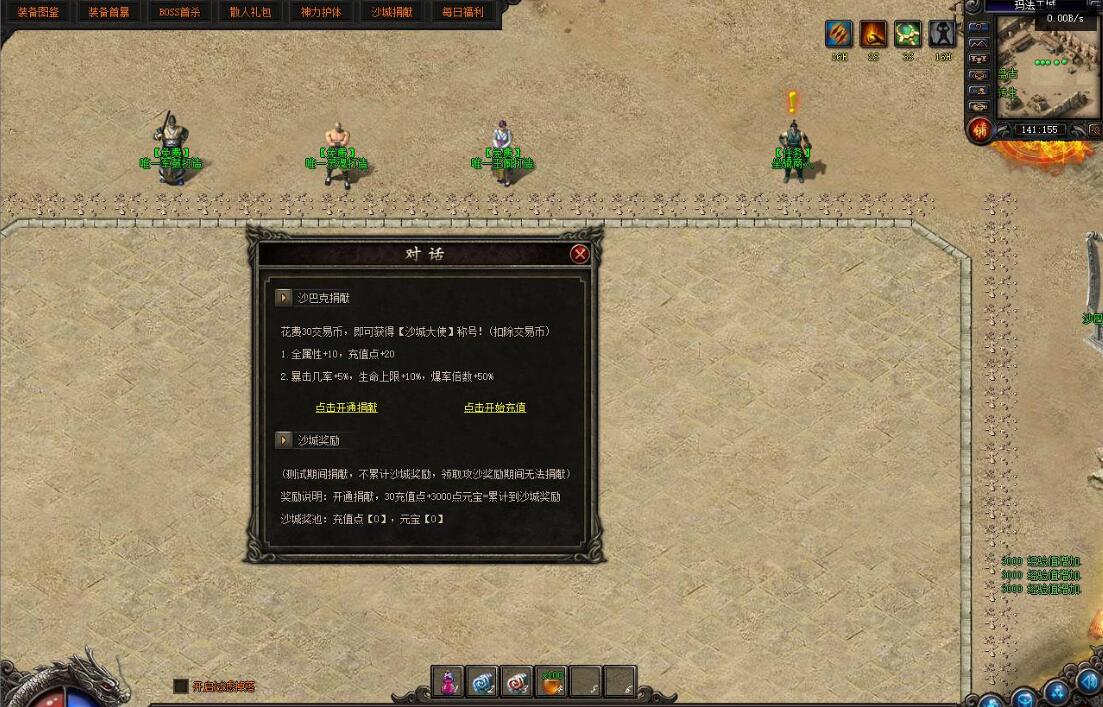 游戏介绍:独家版本:市面唯一+定制游戏引擎+定制素材+众多业内大神心血大作长期复古:回到最初的原始传奇三大职业,没有乱七八糟的特效系统收购:所有材料均可卖给系统换充值点狂暴充值:所有小怪和所有BOSS均大量爆出充值点独特机制:最垃圾的地图都出最终极装备,体验爆装备的瞬间快感装备设置: 300+单件装备,每个都有隐藏属性,直接爆不合成地图设置:四大游戏章节+番外游戏地图+30张探索隐藏地图,无限制进入游戏介绍:独家版本:市面唯一+定制游戏引擎+定制素材+众多业内大神心血大作长期复古:回到最初的原始传奇三大职业,没有乱七八糟的特效系统收购:所有材料均可卖给系统换充值点狂暴充值:所有小怪和所有BOSS均大量爆出充值点独特机制:最垃圾的地图都出最终极装备,体验爆装备的瞬间快感装备设置: 300+单件装备,每个都有隐藏属性,直接爆不合成地图设置:四大游戏章节+番外游戏地图+30张探索隐藏地图,无限制进入