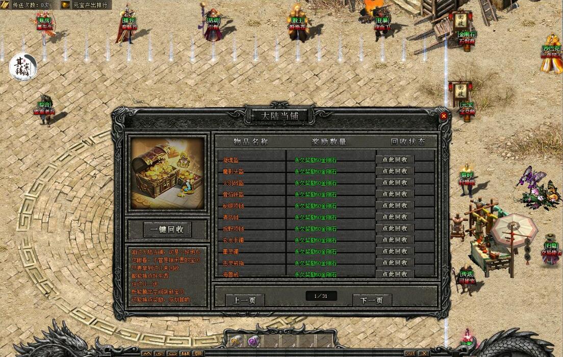 游戏介绍:此版修复为【LF20260110】引擎版本!版本都是经过正常架设,微端无任何问题,此版本为自带客户端,,不要纠结架设不成功为版本问题!好玩,爱玩,劳起来,难度有点大已经算不错的版本了版本推荐:★★★★★[1.17更新]1,小更新,有俩NPC合成显示图标错了以下为调整内容---1,替换LF2511022,修改QQ礼包码为chuanqibanben.com3,增加群管系统图标,群管系统里增加了一些内容,如背包神器,物品存销等内容===============4,删除界面广告5,删除商行自动喊话6,删除微信绑定7,删除传送次数设定8,删除QF内的后台语句9,删除QF内8500行控制产出脚本减少卡顿10,删除回城读条11,删除沙巴克期间禁止下图等12,删除禁止范围拾取的物品13,删除首爆震动和弹窗14,删除爆率最大值800%的限制15,删除垃圾货币掉落16,修改恢复默认的爆率掉落模式17,修改随机石回城石为无限物品18,修改开区倒计时为60秒19,修改传送时间为3秒20,修改装备不掉持久21,修改仓库为无限仓库22,修改回收为3秒定时器23,修改登录器开放第二页背包24,修复踏风锻NPC显示错误25,修改下5大陆NPC到安全区26,修改放出下6大陆NPC到安全区27,修复水元素合成材料没扣除28,调整QF内频繁的属性触发29,增加上架坐标记忆石头30,上架大陆传送石,并修改相应脚本31,重写回收,增加金刚石和元宝分解脚本32,衣服武器强化,元宝修炼得基础属性取值都是最大值33,给一些材料加多倍掉落1-10个34,取消各职业转职吃书限制,转职重新打书35,由于石墓尸王爆一个莫名奇妙的BUG,在数据库中屏蔽36,整理新区替换文件37,整理删除背包神器文件游戏介绍:此版修复为【LF20260110】引擎版本!版本都是经过正常架设,微端无任何问题,此版本为自带客户端,,不要纠结架设不成功为版本问题!好玩,爱玩,劳起来,难度有点大已经算不错的版本了版本推荐:★★★★★[1.17更新]1,小更新,有俩NPC合成显示图标错了以下为调整内容---1,替换LF2511022,修改QQ礼包码为chuanqibanben.com3,增加群管系统图标,群管系统里增加了一些内容,如背包神器,物品存销等内容===============4,删除界面广告5,删除商行自动喊话6,删除微信绑定7,删除传送次数设定8,删除QF内的后台语句9,删除QF内8500行控制产出脚本减少卡顿10,删除回城读条11,删除沙巴克期间禁止下图等12,删除禁止范围拾取的物品13,删除首爆震动和弹窗14,删除爆率最大值800%的限制15,删除垃圾货币掉落16,修改恢复默认的爆率掉落模式17,修改随机石回城石为无限物品18,修改开区倒计时为60秒19,修改传送时间为3秒20,修改装备不掉持久21,修改仓库为无限仓库22,修改回收为3秒定时器23,修改登录器开放第二页背包24,修复踏风锻NPC显示错误25,修改下5大陆NPC到安全区26,修改放出下6大陆NPC到安全区27,修复水元素合成材料没扣除28,调整QF内频繁的属性触发29,增加上架坐标记忆石头30,上架大陆传送石,并修改相应脚本31,重写回收,增加金刚石和元宝分解脚本32,衣服武器强化,元宝修炼得基础属性取值都是最大值33,给一些材料加多倍掉落1-10个34,取消各职业转职吃书限制,转职重新打书35,由于石墓尸王爆一个莫名奇妙的BUG,在数据库中屏蔽36,整理新区替换文件37,整理删除背包神器文件