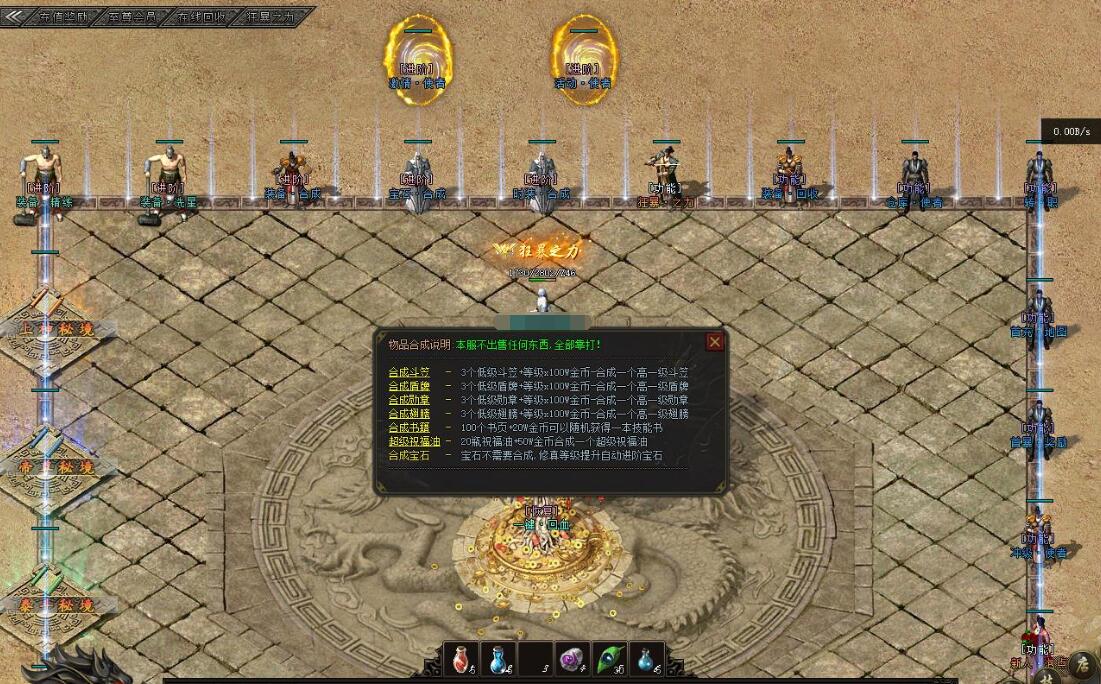 游戏介绍:[版本主要玩法和特色]特色一: ''靠堆叠爆率属性获取装备的玩法''前期地图怪物爆率低,随机属性低的主要原因是身上的装备为白板,没有附加属性需要消费或者回收攒元宝,去升级爆率[自身爆率高了,同一只怪掉落的东西也会变得更多]升级爆率方式[拾取鉴定][命格提升][装备洗练][升级会员等级][套装属性][打造时装]特色二: ''靠击杀怪物数量得到修为值,自动转生''没有转生NPC,需要玩家靠抢BOSS参与活动获得修为值修为值积分满足条件自动转生特色三: ''进阶飞跃靠在秘境打爆星装备''前五个大陆爆的装备只有鉴定属性,六个秘境出得装备还有附加的强化星级秘境等级不同,强化星级不同,最高六星,分别在对应的秘境消耗元宝或者金币洗练星级越高,洗出来高级属性的几率越大特色四:"67个命格系统"命格各种元素,切割,爆率,攻击倍数,吸血,收益为一体分为绿黄粉红四个等级,67种命格属性,增加消费丰富内容游戏介绍:[版本主要玩法和特色]特色一: ''靠堆叠爆率属性获取装备的玩法''前期地图怪物爆率低,随机属性低的主要原因是身上的装备为白板,没有附加属性需要消费或者回收攒元宝,去升级爆率[自身爆率高了,同一只怪掉落的东西也会变得更多]升级爆率方式[拾取鉴定][命格提升][装备洗练][升级会员等级][套装属性][打造时装]特色二: ''靠击杀怪物数量得到修为值,自动转生''没有转生NPC,需要玩家靠抢BOSS参与活动获得修为值修为值积分满足条件自动转生特色三: ''进阶飞跃靠在秘境打爆星装备''前五个大陆爆的装备只有鉴定属性,六个秘境出得装备还有附加的强化星级秘境等级不同,强化星级不同,最高六星,分别在对应的秘境消耗元宝或者金币洗练星级越高,洗出来高级属性的几率越大特色四:"67个命格系统"命格各种元素,切割,爆率,攻击倍数,吸血,收益为一体分为绿黄粉红四个等级,67种命格属性,增加消费丰富内容