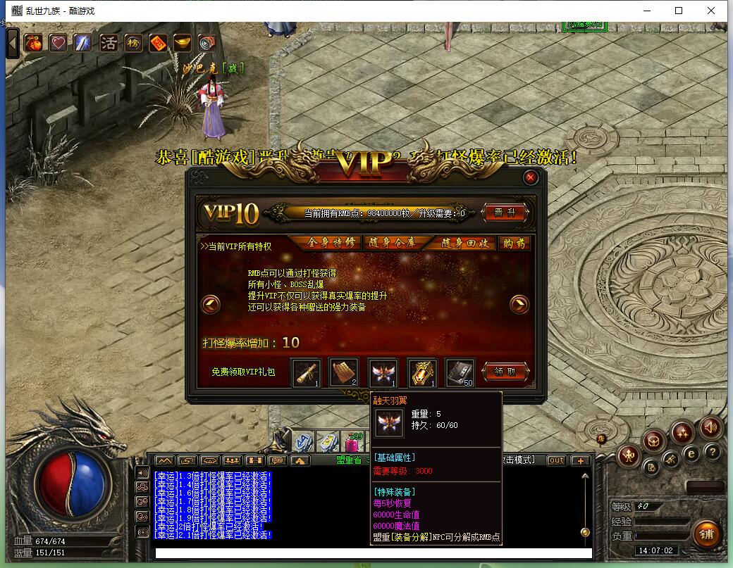 此端没有配套网站文件!有简易攻略1.杀毒。替换引擎!2.删除端内看到的广告。我看到的都删除了。没看到的不知道。整理端内杂七杂八无用的文件。搞干净一点舒服3.游戏内的群号改为了36560477.有网站的地方改为了www.chuanqibanben.com4.增加商业服覆盖。群服有货币触发脚本写好了直接填数字。商业服覆盖掉就没有了5.增加一个单机登陆器。方便单机的朋友。单机最好用微端吧。覆盖我没测试过!6.增加开区清理文件。新手开区直接丢过去覆盖就好了!7.端内增加一个充值比例建议。当然。仅供参考。你也可以不接受我的建议8.D盘根目录需要文件整合在一个文件夹。方面开区的时候清理。需要注意的是这个服的通区路径用指定路径写的。如果你不是放D盘的话。改一下路径就好了!9.修复主界面血条旁边帮主按钮的洞洞和等级下方的洞洞。都修补好了。顺带微调主界面UI按钮位置10.替换主界面丑的一批的人物界面。背景人物太小也替换成大号的。并所有位置微调11.增加大背包。以及背包按钮。背包按钮功能实现12.装备仓库换成无限的。999件装备随便存13.修复鸿蒙大陆令牌小退后消失的问题14.调整人物主界面所有UI位置。还有每个界面战斗力的显示位置。自己看下面截图的效果15.修复装备回收报错!有几个按钮错误16.修复游戏公告。全区公告文件缺失。放通区文件一起了。要发什么公告直接通区写就行17.打开被取消的称号NPC。不知道为什么被取消。反正我就打开了.好像并没什么作用。哈哈无配套网站此端没有配套网站文件!有简易攻略1.杀毒。替换引擎!2.删除端内看到的广告。我看到的都删除了。没看到的不知道。整理端内杂七杂八无用的文件。搞干净一点舒服3.游戏内的群号改为了36560477.有网站的地方改为了www.chuanqibanben.com4.增加商业服覆盖。群服有货币触发脚本写好了直接填数字。商业服覆盖掉就没有了5.增加一个单机登陆器。方便单机的朋友。单机最好用微端吧。覆盖我没测试过!6.增加开区清理文件。新手开区直接丢过去覆盖就好了!7.端内增加一个充值比例建议。当然。仅供参考。你也可以不接受我的建议8.D盘根目录需要文件整合在一个文件夹。方面开区的时候清理。需要注意的是这个服的通区路径用指定路径写的。如果你不是放D盘的话。改一下路径就好了!9.修复主界面血条旁边帮主按钮的洞洞和等级下方的洞洞。都修补好了。顺带微调主界面UI按钮位置10.替换主界面丑的一批的人物界面。背景人物太小也替换成大号的。并所有位置微调11.增加大背包。以及背包按钮。背包按钮功能实现12.装备仓库换成无限的。999件装备随便存13.修复鸿蒙大陆令牌小退后消失的问题14.调整人物主界面所有UI位置。还有每个界面战斗力的显示位置。自己看下面截图的效果15.修复装备回收报错!有几个按钮错误16.修复游戏公告。全区公告文件缺失。放通区文件一起了。要发什么公告直接通区写就行17.打开被取消的称号NPC。不知道为什么被取消。反正我就打开了.好像并没什么作用。哈哈无配套网站