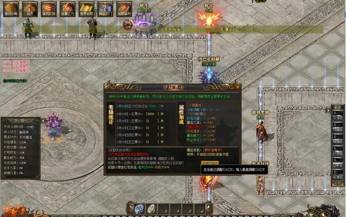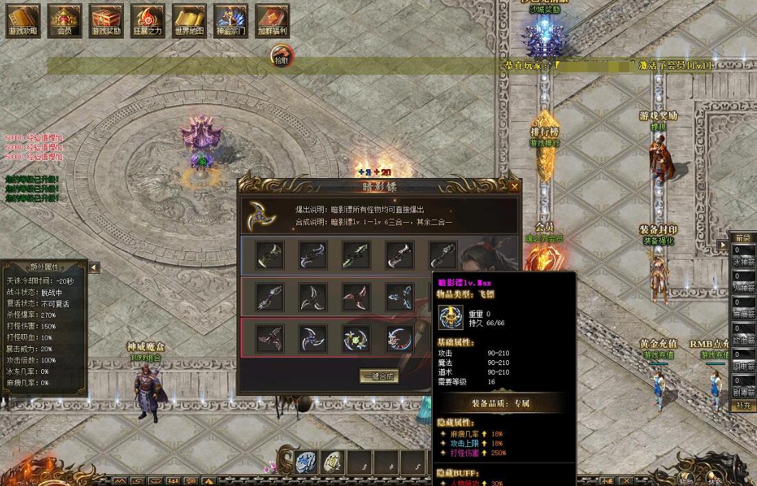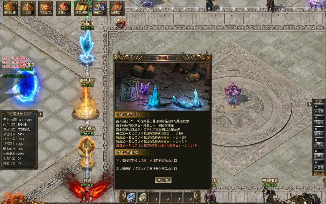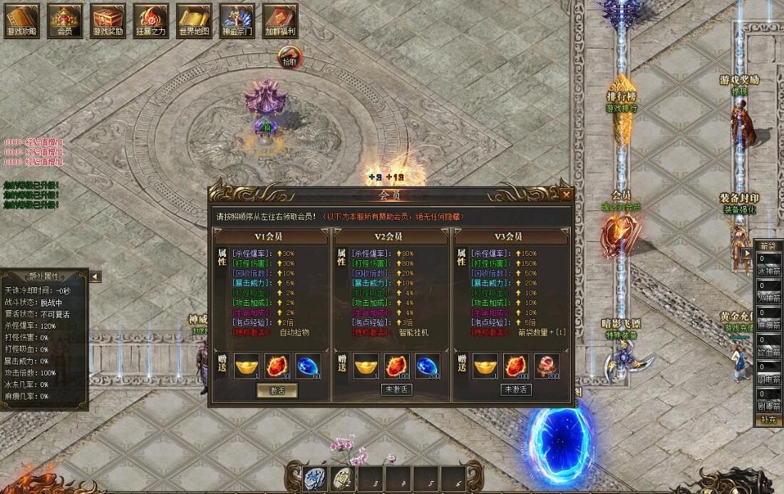 游戏介绍:文字介绍:【天玄城简介】0-65级区域爆出专属装备苦行草鞋大幅度提升打怪伤害 前期必备70-100级区域爆出专属装备铁血手环大幅度提升打怪吸血 挑战BOSS必备散人福音转生区域爆出专属物品透明披风专属功能穿怪神器前后期都非常有用天玄城的野外势力爆出各种专属武器衣服项链 头盔 都会针对性的大度图提升各种属性绿色玩家前期必争之地后期地图自行探索 玩法服循循渐进往上打 ~攻击力到达5000以后 如果高级地图还未解锁 玩家可以选择等待潘神的迷宫开门后进入迷宫 一只下层进行挑战 每层都会刷新不同的怪物说不定会有意外惊喜后期树敌之后也不用担心无法挂机 潘神的迷宫内 所有玩家都是强制和平模式 独行侠再也不用担心被人追杀拉!游戏提升指南转生------装备解封-------箭矢攻击-------装备精炼-------称号系统-------时装系统-------神威系统--------七色图系统V2玩家游戏指南V2会员 大幅度提升打怪爆率 打怪伤害以及只能挂机功能 解放双手V2会员会赠送260个白玉石 第一时间进行转生 会提升很多打怪真实伤害 前期打怪速度大幅提升也然后各个地图寻找红色怪物击杀 爆率比普通怪物高的不是一点点 记得寻找地图内的隐藏巢穴哦 全部红色怪物 找到之后记得记录坐标 不要下次忘记了V3玩家游戏指南V3会员 各种属性爆炸性提升 打怪速度直接拉满 更有隐藏剧情触发 (结晶山系统) 游戏NPC查看V3员前期只需要不停的寻找0-65级地图的隐藏巢穴 找到后疯狂击杀 凑够一定数量的白玉石把第一大陆的转生直接点满然后进入转生区域 寻找血色羽毛以及透明披风的线索 如果实在心急的玩家也可以直接挑战守护者 磨死他 但是需要耗费大量时间 守护者必爆指定的特殊物品开启迷惘之塔后需要多人配合进行挑战 单打独斗难度太高 这里还是建议土豪玩家带几个绿色玩家组队进服 这样材料 货币等刚需物品 也更容易收集土豪推荐:转生----坐骑-----翅膀-----称号-----精炼------装备封印-------箭矢--------神威【简单发展攻略】地图篇----天玄城----血色神殿会爆出血色羽毛 拥有血色羽毛后可以直接挑战巫族领地的[透明披风守护者]会大幅度提升真实伤害 基础怪物也会爆出透明披风 爆率略低巫族领地会爆出透明披风 拥有透明披风后可以直接挑战幻境迷宫的[迷宫钥匙守护者]会大幅度提升真实伤害基础怪物也会爆出迷宫钥匙 爆率略低击杀迷惘之塔的九头蛇要会自动开启大荒古都 前期难度较高 需要玩家组队前往迷惘之塔进行挑战----大荒古都----血魔祭坛会爆出神秘火炬 拣取神秘火炬之后会自动解锁混沌古迹未知葬地会爆出【飞天翼】 拥有飞天翼后方才可以进入登天楼 登天楼会爆出【遗址残卷】用来解锁北海魔域以及镇妖塔帝王墓会爆出【域外密卷】 解锁域外之界家活动【结晶矿山】基础篇:独家结晶山系统 四大区域会刷不同大陆的怪物 以及部分专属领主 爆率超高奴隶篇:合区攻沙结束后22.30分举行奴隶来袭活动 会分别再结晶山通道 以及结晶矿山刷大量奴隶(奴隶数量根据游戏内的会员数量决定 具体数值可以查看会员NPC)每个奴隶最少爆出两根金条 奴隶主爆出大量金砖 甚至金盒活动在合区后22.30准时开启 玩家可以提前跑通道进入结晶矿场等待 战斗力略低的玩家可以就在通道内守候 大佬可以提前进入结晶矿场蹲点守候结晶矿场内刷新的奴隶数量 是结晶山通道的三倍 当结晶山通道以及结晶山矿场内的所有奴隶都被斩杀后 结晶山入口会刷新一只奴隶主玩家自由争抢 爆出的金砖基本是全屏 爆出后1分钟之后可以拣取散人福利 运气好一波起飞----域外之界----冥河地宫会爆出【定神珠】 拥有定神珠之后可以免疫恶怨神殿的地图伤害恶怨神殿会爆出【龙神血】 拥有龙神血之后可以免疫邪龙墟的地图伤害邪龙墟会爆出【龙族宝珠】 拥有龙族宝珠后可以免疫堕天地狱的地图伤害堕天地狱会爆出【两界天信物】 用于解锁神州半岛系列地图更多内容请到游戏自行发现每个大陆都有隐藏的BOSS巢穴 隐藏再各个地图的不知名角落 需要玩家自行探索每个大陆都有隐藏的BOSS巢穴 隐藏再各个地图的不知名角落 需要玩家自行探索每个大陆都有隐藏的BOSS巢穴 隐藏再各个地图的不知名角落 需要玩家自行探索每个大陆都有隐藏的BOSS巢穴 隐藏再各个地图的不知名角落 需要玩家自行探索游戏内各种地图环环相扣 剧情装备 剧情路线丰富 耐玩不乏味 适合长期探险 娱乐每个大陆都有专属的野外势力 会爆对应的专属装备专属装备属性异常强大 适合喜欢手动打宝的玩家前期攻击力不够下地图的玩家 可以直接去结晶山挑战 结晶山共分四个区域 对应四个大陆 怪物超多 爆率高 更有专属领主怪物潘神的迷宫爆率会比外面高一些 开门时候尽量进去 地图内强制和平模式 前中期发展好去处转生详解转生会附加打怪真实伤害 打怪伤害倍率 打怪爆率 以及血量 攻击等 非常重要 并且前期转生材料跟货币需求非常低中后期转生会提升人物等级 暴击威力以及攻击倍数装备封印详解装备解封会增加各种属性 并且解封需求较低 一次解封终身受用 绿色玩家福利哦箭矢系统游戏有六种不同攻击BUFF的箭矢 玩家可以根据自身需求去激活需要的攻击BUFF[有能力的玩家可以全部激活]装备精炼玩家免费 玩家只需要不停的打怪收集精炼石即可免费精炼装备 装备精炼