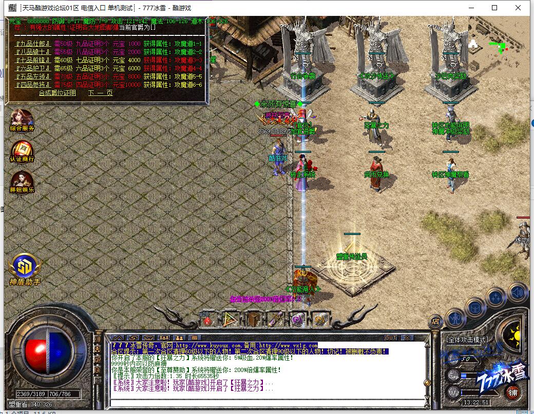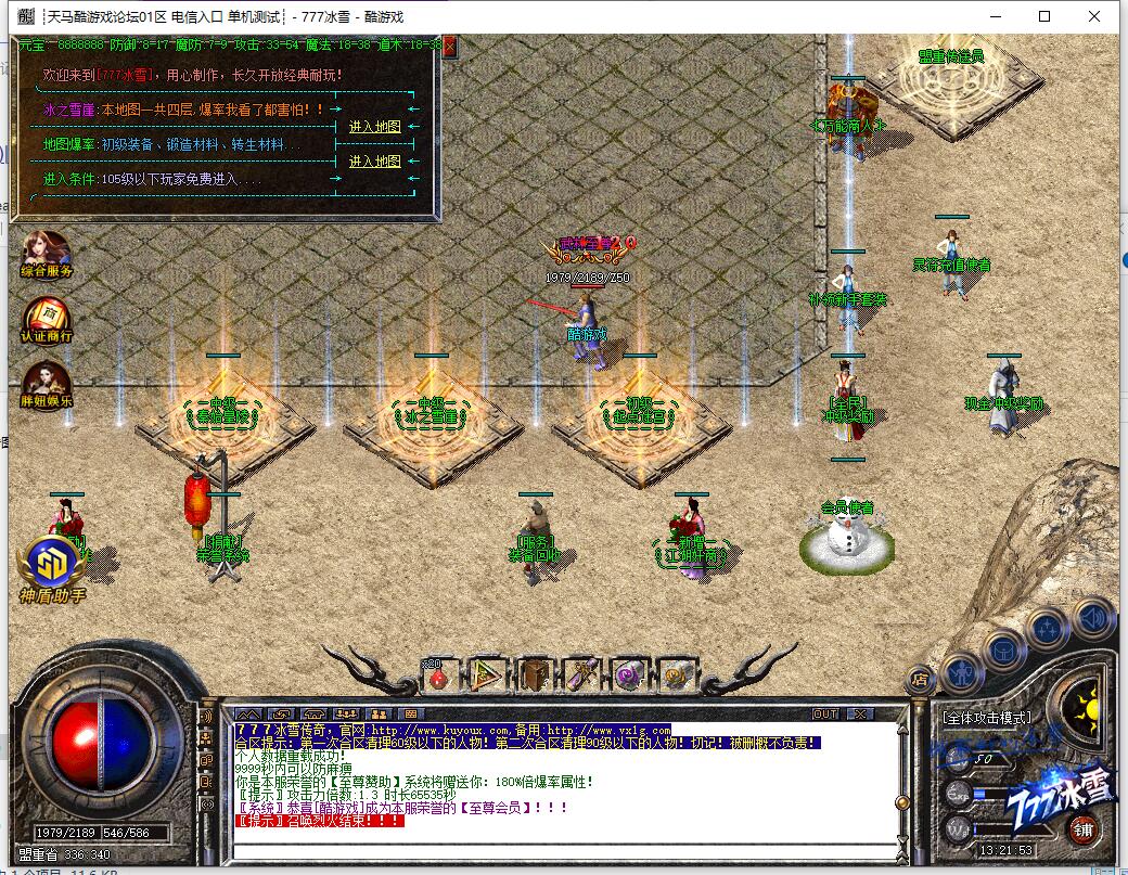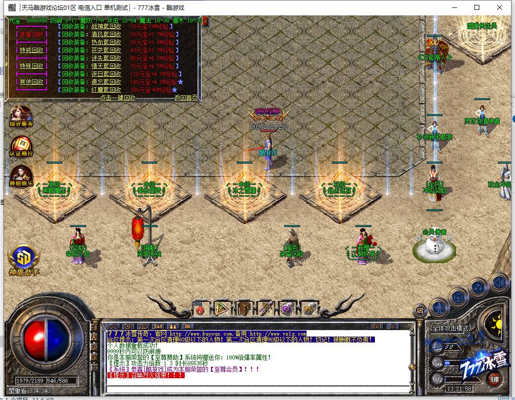重要提示:请玩家勿必设置自己的二级密码以及正确的手机绑定!如不设置给盗概不负责!最近骗子众多,玩家私下交易装备或灵符给骗,概不找回!严禁玩家私底下买卖灵符,发现删号处理!关于摆黑摊的玩家和使用非法外挂的玩家,一旦发现封号处理绝不姑息。玩家进行担保交易的时候一定要认清QQ号,我们不会主动找玩家索要账号信息,玩家在担保过程中一定要认清QQ号!777冰雪公益-不卖元宝-纯公益一切装备靠打全爆,爆率完全看脸,只要你有时间,元宝.装备.等级一切不是梦!最高端定制封挂系统 封挂严格 公平长期服 全图BOSS本服不卖元宝纯公益服 只出售30元会员 无任何隐藏消费重要提示:请玩家勿必设置自己的二级密码以及正确的手机绑定!如不设置给盗概不负责!最近骗子众多,玩家私下交易装备或灵符给骗,概不找回!严禁玩家私底下买卖灵符,发现删号处理!关于摆黑摊的玩家和使用非法外挂的玩家,一旦发现封号处理绝不姑息。玩家进行担保交易的时候一定要认清QQ号,我们不会主动找玩家索要账号信息,玩家在担保过程中一定要认清QQ号!777冰雪公益-不卖元宝-纯公益一切装备靠打全爆,爆率完全看脸,只要你有时间,元宝.装备.等级一切不是梦!最高端定制封挂系统 封挂严格 公平长期服 全图BOSS本服不卖元宝纯公益服 只出售30元会员 无任何隐藏消费