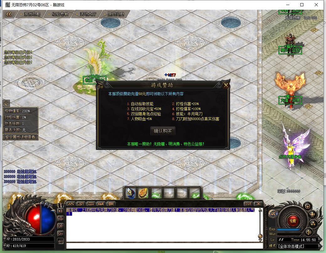 [251]系统公告:本服禁止使用任何外挂,发现使用外挂者,不管是否花钱,立即封号![251]系统公告:请玩家保护好自己的帐号和密码,不要告诉任何人!否则后果自负![251]系统公告:如游戏中遇到验证宝宝时,请用验证技能杀死,否则将被认定为脱机![251]游戏攻略:本服中的大部分怪物皆可爆出自身专属的装备,属性非常强大![251]游戏攻略:提升等级除了打怪跟泡点外,还可以使用经验卷轴在左上方按钮处升级![251]游戏攻略:本服为无限刀速度,捐献沙城后还可获得极限刀速加长![251]游戏攻略:越级打怪时,如果感觉到有心无力的话,可以去升级下你的打野刀![251]游戏攻略:转生等级可以提升你的血量恢复百分比![251]游戏攻略:魔法盾,护体神盾等高级技能,可在奥秘大师处用奥秘书页来进行抽奖![251]游戏攻略:在越级打怪时,人物的吸血极为重要,吸血可通过装备鉴定,或者会员赞助,武器获得![251]游戏攻略:新区60分钟开放的火鸡活动,请务必参加,真火鸡可直接爆出一份回馈大礼包![251]系统公告:本服禁止使用任何外挂,发现使用外挂者,不管是否花钱,立即封号![251]系统公告:请玩家保护好自己的帐号和密码,不要告诉任何人!否则后果自负![251]系统公告:如游戏中遇到验证宝宝时,请用验证技能杀死,否则将被认定为脱机![251]游戏攻略:本服中的大部分怪物皆可爆出自身专属的装备,属性非常强大![251]游戏攻略:提升等级除了打怪跟泡点外,还可以使用经验卷轴在左上方按钮处升级![251]游戏攻略:本服为无限刀速度,捐献沙城后还可获得极限刀速加长![251]游戏攻略:越级打怪时,如果感觉到有心无力的话,可以去升级下你的打野刀![251]游戏攻略:转生等级可以提升你的血量恢复百分比![251]游戏攻略:魔法盾,护体神盾等高级技能,可在奥秘大师处用奥秘书页来进行抽奖![251]游戏攻略:在越级打怪时,人物的吸血极为重要,吸血可通过装备鉴定,或者会员赞助,武器获得![251]游戏攻略:新区60分钟开放的火鸡活动,请务必参加,真火鸡可直接爆出一份回馈大礼包!