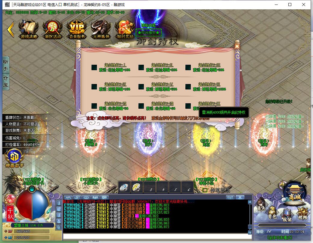 游戏攻略官方请认准群管理 谨防骗子 可能有点长请耐心看完。---------------------------------------------------------------------------------------游戏简介:升级靠打怪,装备材料 物价超高!地图版块多,所有装备爆率全开,给所有玩家一个追梦的权利。---------------------------------------------------------------------------------------消费档位:---------------------------------------------------------------------------------------★0元档★-服务端稳赚不亏档进游戏首先领取新手礼包,QQ礼包:施毒术。微信礼包:轻剑、重剑、1%的山居剑意伤害 这些必领然后土城最右下边地图野林逐步往左地图,打怪没血记得回城点恢复状态。怪物有难度,需要发展。---------------------------------------------------------------------------------------★★50元档★★-性价比高-散人推荐★沙城捐献(30RMB)★+ ★圣兽之力(狂暴20RMB)★这两个必开散人都懂注意:有捐献属性则自动修炼十步一杀 有狂暴属性则自动修炼魔法盾(属性消失技能亦消失)开区后可以快人一步 打点初级装备就可以去更高级的地图发展无论是服务端,还是自己玩都能适用的消费档---------------------------------------------------------------------------------------★★★158元档★★★-性价比高-高级服务端推荐★108元赞助会员★ + ★沙城捐献(30元RMB)★ 。 圣兽之力:有三种开启方式★圣兽之力(狂暴20RMB)★★圣兽之力(狂暴50W元宝)★★圣兽之力(狂暴500银两)★适用于高级服务端,小资玩家,108元赞助满级会员+30元沙城捐款+20元狂暴,爆率加成高,回收加成高 传送 奇遇 防麻痹样样都是快人一步另外地图首领爆率极高,有资格的时候一定要击杀,怪物有难度,需要发展。赞助会员价格表(土右下角)激活★vip1★ 8元获得 自动拾取捡物 爆率+20% 回收+10% 吸血1% ★散人服务端推荐★ 解放双手★vIP2★20元获得 传送功能 爆率+40% 回收+20% 吸血3% ★★初级服务端推荐★★ 首爆+1.2倍 快人一步★vip3★30元获得 奇遇称号爆率+60% 回收+30% 吸血6% ★★★中级服务端推荐★★★ 首爆+1.5倍 奇遇专属★vip4★50元获得 防怪物麻痹 爆率100% 回收+50% 吸血10% ★★★★高级服务端推荐★★★★ 首爆+2.0倍 别人不能打的我能打108元银两充值即可获得全部---------------------------------------------------------------------------------------★★★★老板玩法★★★★满充1958元。★108赞助会员★(可自行选择等级) + ★1800元御剑特权 ★(可自行选择等级)+★沙城捐献(30RMB)★ + ★圣兽之力(狂暴20RMB)★游戏攻略官方请认准群管理 谨防骗子 可能有点长请耐心看完。---------------------------------------------------------------------------------------游戏简介:升级靠打怪,装备材料 物价超高!地图版块多,所有装备爆率全开,给所有玩家一个追梦的权利。---------------------------------------------------------------------------------------消费档位:---------------------------------------------------------------------------------------★0元档★-服务端稳赚不亏档进游戏首先领取新手礼包,QQ礼包:施毒术。微信礼包:轻剑、重剑、1%的山居剑意伤害 这些必领然后土城最右下边地图野林逐步往左地图,打怪没血记得回城点恢复状态。怪物有难度,需要发展。---------------------------------------------------------------------------------------★★50元档★★-性价比高-散人推荐★沙城捐献(30RMB)★+ ★圣兽之力(狂暴20RMB)★这两个必开散人都懂注意:有捐献属性则自动修炼十步一杀 有狂暴属性则自动修炼魔法盾(属性消失技能亦消失)开区后可以快人一步 打点初级装备就可以去更高级的地图发展无论是服务端,还是自己玩都能适用的消费档---------------------------------------------------------------------------------------★★★158元档★★★-性价比高-高级服务端推荐★108元赞助会员★ + ★沙城捐献(30元RMB)★ 。 圣兽之力:有三种开启方式★圣兽之力(狂暴20RMB)★★圣兽之力(狂暴50W元宝)★★圣兽之力(狂暴500银两)★适用于高级服务端,小资玩家,108元赞助满级会员+30元沙城捐款+20元狂暴,爆率加成高,回收加成高 传送 奇遇 防麻痹样样都是快人一步另外地图首领爆率极高,有资格的时候一定要击杀,怪物有难度,需要发展。赞助会员价格表(土右下角)激活★vip1★ 8元获得 自动拾取捡物 爆率+20% 回收+10% 吸血1% ★散人服务端推荐★ 解放双手★vIP2★20元获得 传送功能 爆率+40% 回收+20% 吸血3% ★★初级服务端推荐★★ 首爆+1.2倍 快人一步★vip3★30元获得 奇遇称号爆率+60% 回收+30% 吸血6% ★★★中级服务端推荐★★★ 首爆+1.5倍 奇遇专属★vip4★50元获得 防怪物麻痹 爆率100% 回收+50% 吸血10% ★★★★高级服务端推荐★★★★ 首爆+2.0倍 别人不能打的我能打108元银两充值即可获得全部---------------------------------------------------------------------------------------★★★★老板玩法★★★★满充1958元。★108赞助会员★(可自行选择等级) + ★1800元御剑特权 ★(可自行选择等级)+★沙城捐献(30RMB)★ + ★圣兽之力(狂暴20RMB)★