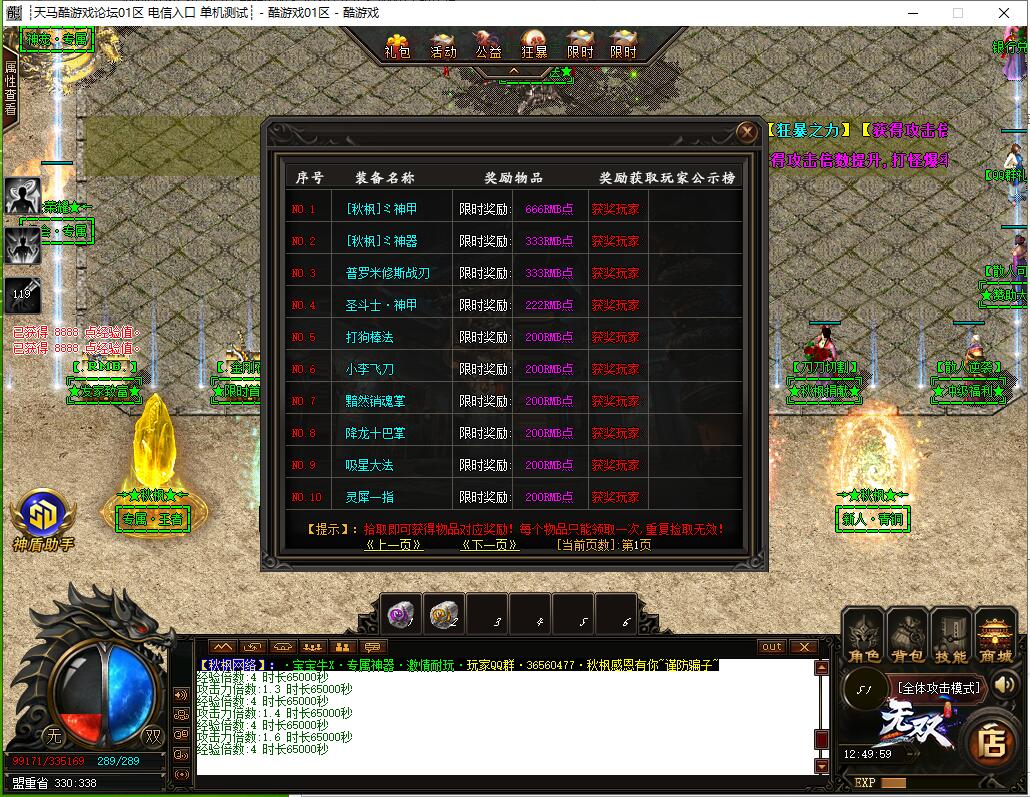 【游戏简介】:|欢迎进入秋枫网络·专属神器·N个大陆·地图N张·百套专属·神装,完美设置·等你来战!【游戏简介】:|本服充值比例1元=10RMB点+1抽奖点+2秋枫之魂+1真实充值·多冲多送·低消费·长久稳定!【游戏简介】:|新人上线送起步赞助·群礼包·切割·施毒术轻松起步·超级耐玩的版本哦·带上兄弟砍服!【游戏简介】:|装备全爆·元宝好打·等级免费·在线回收·自动捡物·自动挂机·让你根本停不下来!【游戏简介】:|每天5个新区不断开放·请合理安排时间·精彩内容等你来战!合区才是激情的开始!【游戏简介】:|爆率全开·一包烟钱·激情一个月·上线直接装B·散人无限牛逼!【游戏简介】:|新区开区第二天下午16点左右合区·晚上攻沙·老区天天攻沙!天天激情!【游戏简介】:|说的再好不如您上游戏体验半小时·带上您的兄弟一起来,挥洒青春,喝最烈的酒,操最好的服!【游戏简介】:|任何优惠信息·喊话等都是骗子·谨防上当受骗·充值一定认准官方网站!特别提示:封杀外挂开挂必封!【游戏简介】:|欢迎进入秋枫网络·专属神器·N个大陆·地图N张·百套专属·神装,完美设置·等你来战!【游戏简介】:|本服充值比例1元=10RMB点+1抽奖点+2秋枫之魂+1真实充值·多冲多送·低消费·长久稳定!【游戏简介】:|新人上线送起步赞助·群礼包·切割·施毒术轻松起步·超级耐玩的版本哦·带上兄弟砍服!【游戏简介】:|装备全爆·元宝好打·等级免费·在线回收·自动捡物·自动挂机·让你根本停不下来!【游戏简介】:|每天5个新区不断开放·请合理安排时间·精彩内容等你来战!合区才是激情的开始!【游戏简介】:|爆率全开·一包烟钱·激情一个月·上线直接装B·散人无限牛逼!【游戏简介】:|新区开区第二天下午16点左右合区·晚上攻沙·老区天天攻沙!天天激情!【游戏简介】:|说的再好不如您上游戏体验半小时·带上您的兄弟一起来,挥洒青春,喝最烈的酒,操最好的服!【游戏简介】:|任何优惠信息·喊话等都是骗子·谨防上当受骗·充值一定认准官方网站!特别提示:封杀外挂开挂必封!