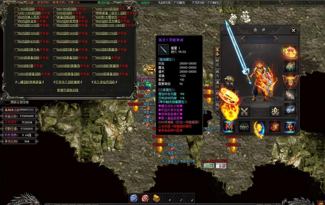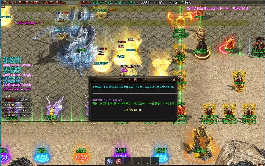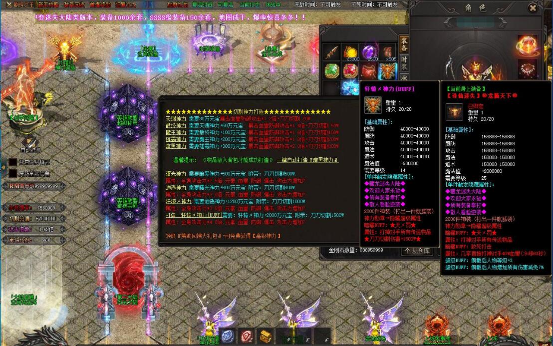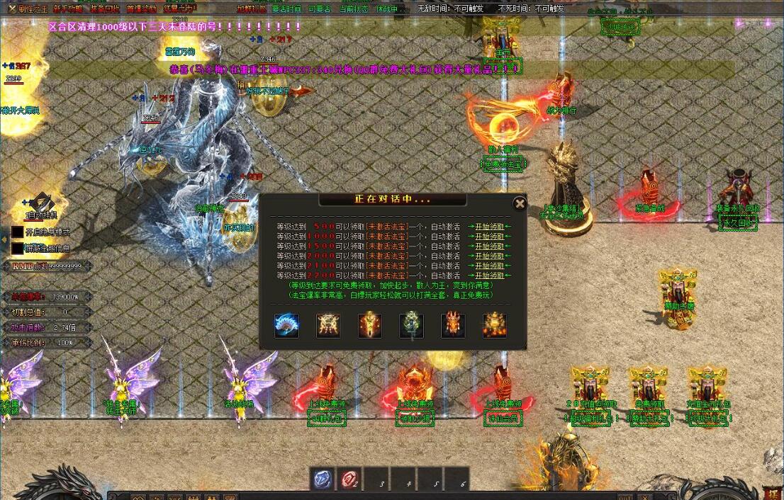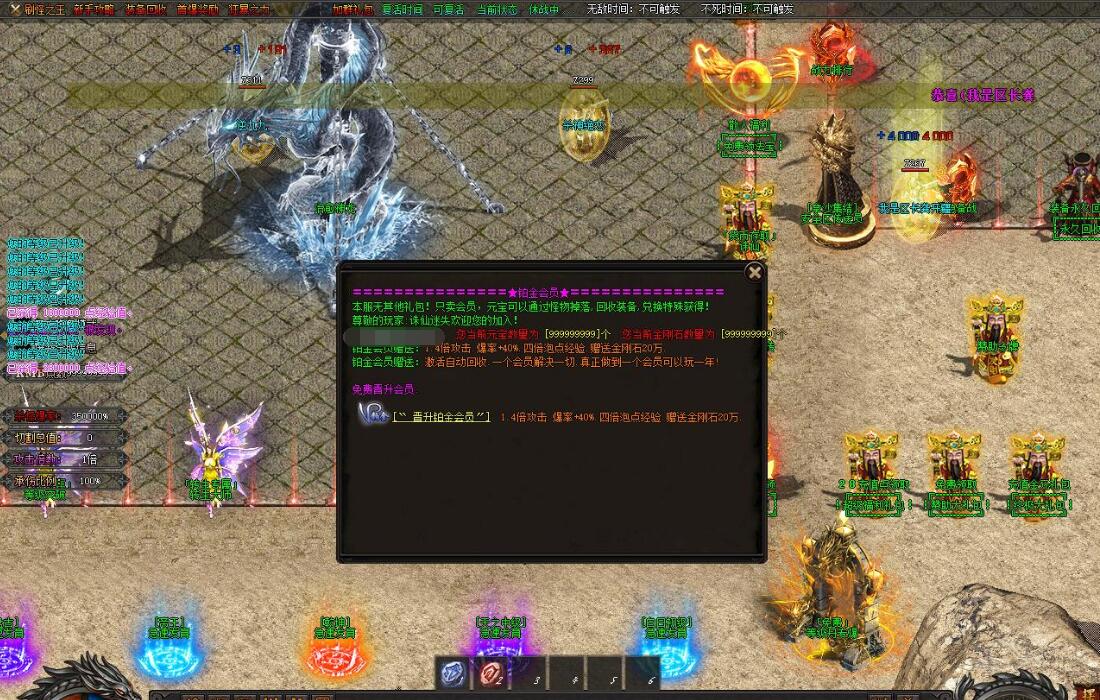 游戏介绍:首先说货币兑换1.增加 37 38 39 40大陆2.增加地图npc:诛仙联盟 苏超联赛 徐州之巅 神级转生装备兑换 等级提升赞助令牌等等npc,增加可玩性3.增加全屏吸怪和超级赞助令牌增加刀刀切割百分之五怪物血量打开背包按钮-货币兑换-找到RMB兑换充值-点进去有大额兑换金刚石和元宝的页面然后是版本后期需要的RMB点-打开背包按钮-货币兑换-找到下面金元兑换业务-打开兑换页面-里面有金元兑换2000个1元微信红包-然后用微信红包兑换RMB点-上面是可以金元宝的-注意金元宝不是金元-需要兑换的-后面有用然后咱们说等级这一块-首先你要先到34大陆-然后找到等级超凡入圣-这里突破还要求你脱掉一些加等级的装备-你突破到10030之后-带上加等级装备-会到10080到10085之间-然后你要进入34大陆的极乐世界地图去合舍利子-合完舍利子-可以回土城做等级突破到10500级-再去下35大陆36大陆的终极狂暴成进入需要的等级-正好是你10500带上加等级的装备等于10542进入第一步,领QQ礼包。第二步,免费开沙捐,开启自动回收。第三步,领取免费礼包,珍宝是快速获得材料的唯一方式,BOSS百分百获得。第四步,开狂爆,爆力加倍。第五步,领完起步开启隐身,直下8大陆,时装和等级合成材料(通关文牒),几波怪全搞定。 转生材料商城直接购买。人形怪爆所有保值材料和货币。第六步,活动前期必抢,最高爆出3700级的所有装备和终极材料。第七步,小资玩家建开个包厢(材料和装备狂爆,快速起飞)。神豪玩家领取任意金元充值礼包,爆力暴涨。第八步,本服只没有任何需要充值才能下大陆和进地图或称号的要求,一切游戏获得,充值都是快速起步,白嫖花时间一样封神。第九步,本服的所有装备和材料都由小怪和BOSS爆出,机率极高。诛仙魂魄18大陆开始BOSS都会爆出,活动爆出,后面小怪随机爆。紫水晶20大陆开始小怪爆出,BOSS随机爆出。第十步,本服升等级需把加等级的装备取下(如倍功,剑甲,勋章,金姑棒,特殊项链),然后把每个大陆的等级升满再带上相应等级的装备就可以进入下一陆了第十一步,挂机打人形怪把相应等级的全样装备带齐,设置自动反击,配带回血四格和吸血龙珠。(吸怪挂机用ESP只设置挂机点,再用F12内挂自动挂机,不会卡位)(ESP挂机不要吸怪,会卡位。有倚天辟地的设置倚天辟地技能引怪就行了)重点须知:本服的所有充值都是方便快速起步,充值只加爆率只要花时间你就是王者。后面自行体验:本服为长期稳定迷失服,非快餐迷失。为了给大家一个公平的游戏平台,一切破坏游戏平衡的请离开本服。游戏介绍:首先说货币兑换1.增加 37 38 39 40大陆2.增加地图npc:诛仙联盟 苏超联赛 徐州之巅 神级转生装备兑换 等级提升赞助令牌等等npc,增加可玩性3.增加全屏吸怪和超级赞助令牌增加刀刀切割百分之五怪物血量打开背包按钮-货币兑换-找到RMB兑换充值-点进去有大额兑换金刚石和元宝的页面然后是版本后期需要的RMB点-打开背包按钮-货币兑换-找到下面金元兑换业务-打开兑换页面-里面有金元兑换2000个1元微信红包-然后用微信红包兑换RMB点-上面是可以金元宝的-注意金元宝不是金元-需要兑换的-后面有用然后咱们说等级这一块-首先你要先到34大陆-然后找到等级超凡入圣-这里突破还要求你脱掉一些加等级的装备-你突破到10030之后-带上加等级装备-会到10080到10085之间-然后你要进入34大陆的极乐世界地图去合舍利子-合完舍利子-可以回土城做等级突破到10500级-再去下35大陆36大陆的终极狂暴成进入需要的等级-正好是你10500带上加等级的装备等于10542进入第一步,领QQ礼包。第二步,免费开沙捐,开启自动回收。第三步,领取免费礼包,珍宝是快速获得材料的唯一方式,BOSS百分百获得。第四步,开狂爆,爆力加倍。第五步,领完起步开启隐身,直下8大陆,时装和等级合成材料(通关文牒),几波怪全搞定。 转生材料商城直接购买。人形怪爆所有保值材料和货币。第六步,活动前期必抢,最高爆出3700级的所有装备和终极材料。第七步,小资玩家建开个包厢(材料和装备狂爆,快速起飞)。神豪玩家领取任意金元充值礼包,爆力暴涨。第八步,本服只没有任何需要充值才能下大陆和进地图或称号的要求,一切游戏获得,充值都是快速起步,白嫖花时间一样封神。第九步,本服的所有装备和材料都由小怪和BOSS爆出,机率极高。诛仙魂魄18大陆开始BOSS都会爆出,活动爆出,后面小怪随机爆。紫水晶20大陆开始小怪爆出,BOSS随机爆出。第十步,本服升等级需把加等级的装备取下(如倍功,剑甲,勋章,金姑棒,特殊项链),然后把每个大陆的等级升满再带上相应等级的装备就可以进入下一陆了第十一步,挂机打人形怪把相应等级的全样装备带齐,设置自动反击,配带回血四格和吸血龙珠。(吸怪挂机用ESP只设置挂机点,再用F12内挂自动挂机,不会卡位)(ESP挂机不要吸怪,会卡位。有倚天辟地的设置倚天辟地技能引怪就行了)重点须知:本服的所有充值都是方便快速起步,充值只加爆率只要花时间你就是王者。后面自行体验:本服为长期稳定迷失服,非快餐迷失。为了给大家一个公平的游戏平台,一切破坏游戏平衡的请离开本服。