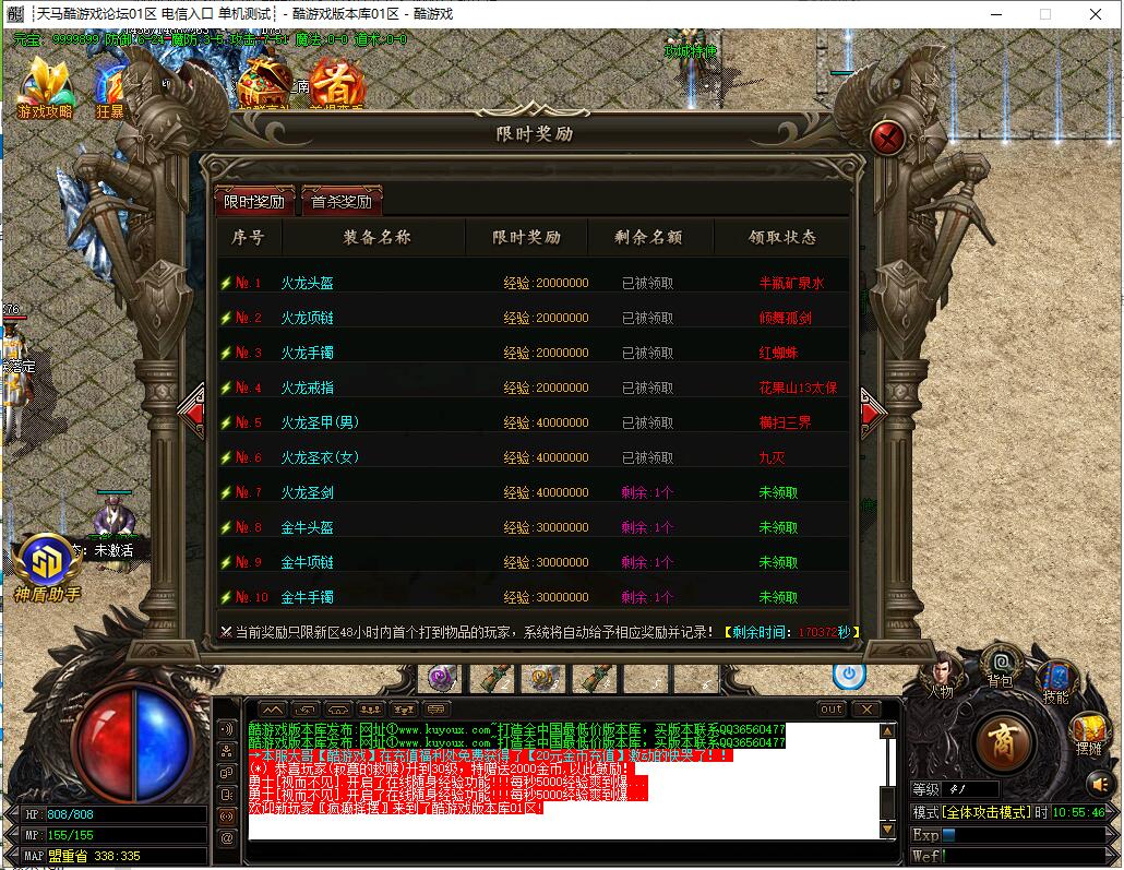 ★★★★★《攻略》★★★★★公益大服—全新理念—史诗巨作—长久稳定—绿色复古版本介绍:公益复古三职业,终极全爆,绝无赞助、顶榜、会员、沙捐、充值地图、赞助地图、每日必充等坑,还原零氪金传奇,拒绝套路,跑路服,一切靠打!职业说明:三职业属性均衡,不变态,无秒杀,PK超级爽,上手耐玩,守护传奇最后一片净土,做最后的散人大服!=========================================================================================充值1元=600000金币(硬通货币,免费自动回收获得);充值1元=10元宝(元宝只用于开启狂暴,可提现);★★★特别提醒:请测试区开启充值,避免正式开区无法领取,耽误您游戏进程;★★★特别提醒:本服是三职业复古激情服,非打金服,GM不参与游戏,一切装备靠打,玩家自行交易;★★★经技术团队长期测试完善特别推出的独家版本,正规授权,可查证;★★★一切装备全爆,无漏爆现象,爆率平衡,发育周期适中,无繁琐合成、无沙城捐献、无强制消费、无门槛地图(一切地图只需少量金币,达到等级要求即可进入);====================================================================================================================================================================================★★★铁粉赞助指南★★★【0元散人玩家】1、上线即可自动捡取,自动回收;2、上线领取QQ群礼包:chuanqibanben.com,内含技能书、血石、斗笠等;3、通过打怪回收装备获取大量金币及经验(配合商城聚灵珠效果翻倍);4、各个职业都可快速起步,体验玩家建议道士(随等级提升BB攻击及数量);------------------------------------------------------------------------------------------【17元散人玩家】1、7元充值金币(合血石-土城上光线);2、10元充值[元宝--开启狂暴];《狂暴之力》倍攻+1.1倍,生命提升15%,爆率+100%;------------------------------------------------------------------------------------------【77元小资玩家】(金币建议通过回收获取,土豪玩家酌情选择)1、67元充值[金币],将血石斗笠直接合满;2、10元充值[元宝]开启狂暴之力,获得倍攻、生命、爆率加成;3、利用前期积累的优势,优先进图占领各类资源,快速发育;------------------------------------------------------------------------------------------【277元土豪玩家】(金币建议通过回收获取,土豪玩家酌情选择)1、277元充值[金币],将血石、斗笠、终极时装套合满;2、10元充值[元宝]开启狂暴之力,获得倍攻、生命、爆率加成;3、终极时装套装属性:附加15%永久爆率、攻魔道、血量、元素属性;------------------------------------------------------------------------------------------【853元至尊级玩家】(金币建议通过回收获取,土豪玩家酌情选择)1、277元充值[金币],将血石、斗笠、终极时装套合满;2、10元充值[元宝]开启狂暴之力,获得倍攻、生命、爆率加成;3、终极时装套装属性:附加15%永久爆率、攻魔道、血量、元素属性;4、188+388元充值[元宝],在土城下光线开启至尊赞助、大神魔称号;《大神魔》全属性100-100、全元素10%、爆率提升50%,永久吸血功能(法、道技能可吸血+蓝,群怪站撸无压力)《武林至尊》全属性30-30、全元素2%、爆率提升20%;专属福利:每天领取4小时挂机时间;(大神魔+武林至尊触发传送功能)-------------------------------------------------------------------------------------------【1864元超神级玩家】1、10元充值[元宝]开启狂暴之力,获得倍攻、生命、爆率加成;2、188+388元充值[元宝],在土城下光线开启武林至尊、大神魔称号;3、1288元充值[金币],以上特殊全满,用不完留着中后期有大用处(充金币附带积分1:1,积分到达1288免费领取阴阳继承者称号);《阴阳继承者》双防100-100,基础体力+1500、基础魔力+1500,倍攻1.1倍、爆率100%,元素5%(唯一反伤元素);专属福利:每天领取8小时挂机时间;(阴阳继承者+神魔+武林至尊触发传送功能,极限爆率,挂机12小时,全服唯一鞭尸功能);===========================================================================================★★★本服无任何强制消费,大神魔也是可以免费金币升级,挂机功能只是一个辅助功能不是必备★★★===========================================================================================【转区介绍】1、直充号可以不限次数转区,收购号仅有1次转区资格,请走担保,确认转区资格降低风险;2、转区资格请联系客服确认,收购号需要客服记录并激活转区资格(私下交易无转区资格,切记);3、账号担保交易收取交易额的10%手续费,同时我们将提供改密保等管理服务,为你交易安全保驾护航;4、转区账号只认号不认人,请牢记自己的注册信息,不要随意把账号泄露给他人;5、认准群内群管理(要认清QQ号码,不要只看昵称,每日00:00点闭群后,客服休息,请在工作时间咨询);===========================================================================================【升级方式】1、上线开启随身泡点,直接前往当前等级能下的地图撸BOSS;2、等到了70级就去牛魔底层打BOSS,打几个双倍经验勋章带上(也可商铺购买);3、切记一定要多打BOSS,配合经验勋章升级超级快;4、回收经验也是重要的经验来源,且可以与聚灵珠共享;5、每晚22.30的行会争霸活动必须参加!可获得超多经验与奖励;6、本服吃聚灵珠是免费的,所以一定要无限从商铺买珠子来吃;===========================================================================================【详细玩法】本服只有3个大陆土城 - 华夏钓鱼岛 - 咸阳城1、上线第一时间开启随身泡点,领取Q