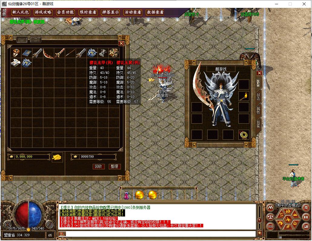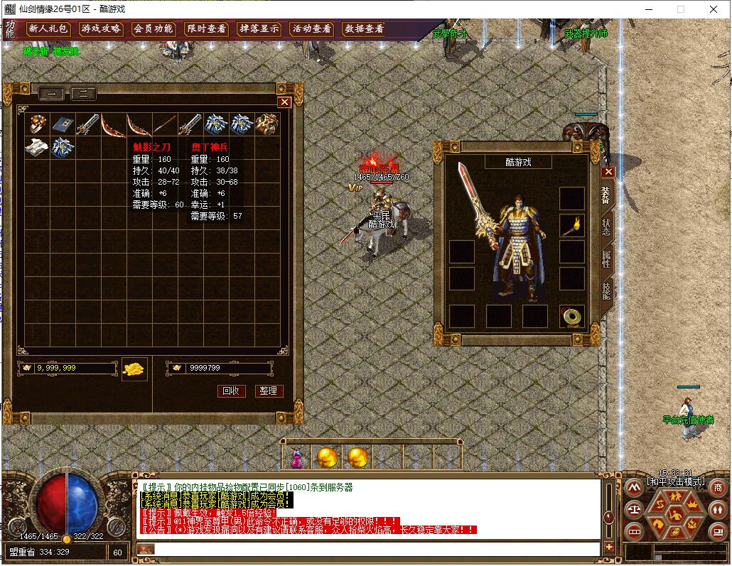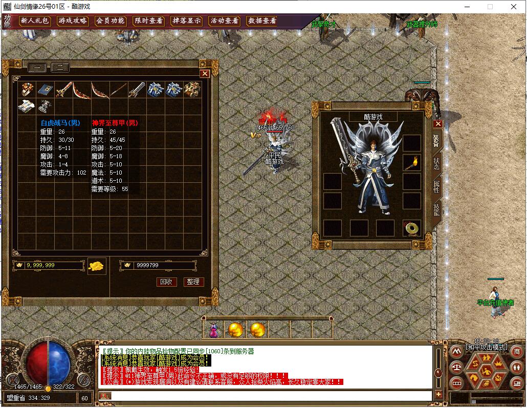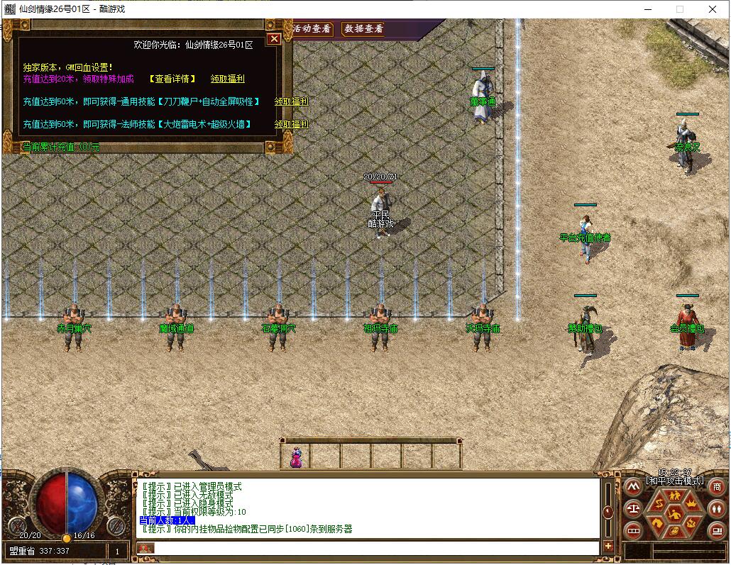装备介绍:在原2.3就出上删除大量无用装备,只保留经典与实用装备分别为:沃玛套装,祖玛套装,赤月套装,天龙轩辕魔神,齐天白虎朱雀,帝王凤者血煞,武神道神神魔,赤月套(新)高级装备(百战合金项链,冰玉项链,圣心神链,玉石戒指,金星项链,无极天镯系列)武器(冰清剑,王者统刃,魅影武器系列,破天斩系列(任务),斗神长刃,无尘曲剑,弥勒法杖等)衣服(火龙神甲(任务),神界战马(任务),樱花龙翼(任务),神界至尊甲,火龙圣甲等)勋章(星光,鬼魄,天障,耶禾,神威,纵横,天下霸主勋章等等)武器升级最高+7,失败武器不破碎怪物设置:本服怪物设置适当提高了伤害,降低了血量,爆率使用原始爆率天之子,兽民领袖,赤月恶魔,旋风教主系列为1500-15000血战魔凤,凰,火龙教主,魔族之主系列为10000-32000血地图走法,传送NPC有详细介绍,装备介绍:在原2.3就出上删除大量无用装备,只保留经典与实用装备分别为:沃玛套装,祖玛套装,赤月套装,天龙轩辕魔神,齐天白虎朱雀,帝王凤者血煞,武神道神神魔,赤月套(新)高级装备(百战合金项链,冰玉项链,圣心神链,玉石戒指,金星项链,无极天镯系列)武器(冰清剑,王者统刃,魅影武器系列,破天斩系列(任务),斗神长刃,无尘曲剑,弥勒法杖等)衣服(火龙神甲(任务),神界战马(任务),樱花龙翼(任务),神界至尊甲,火龙圣甲等)勋章(星光,鬼魄,天障,耶禾,神威,纵横,天下霸主勋章等等)武器升级最高+7,失败武器不破碎怪物设置:本服怪物设置适当提高了伤害,降低了血量,爆率使用原始爆率天之子,兽民领袖,赤月恶魔,旋风教主系列为1500-15000血战魔凤,凰,火龙教主,魔族之主系列为10000-32000血地图走法,传送NPC有详细介绍,