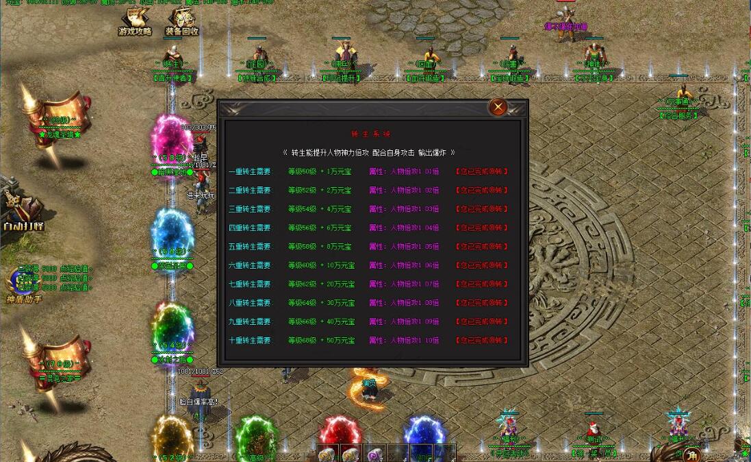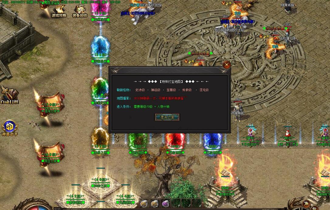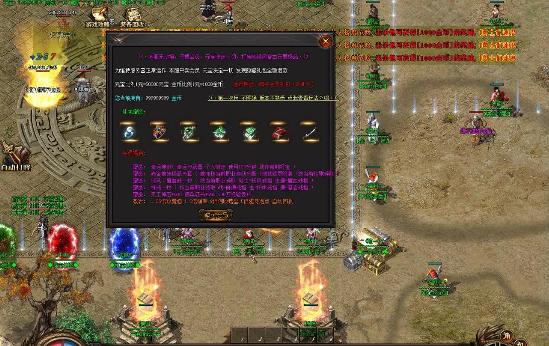 游戏介绍:【本服长期开放,适合以下玩家】1、花了许多冤枉钱,玩了太多快餐服,走了许多弯路的人民币玩家2、喜欢通宵打装备,打boss的快感,喜欢出售和打装备的老骨灰玩家【特此说明】品牌长期服,一开就是好几年,装备被爆了,还有爆回来的机会,实在不行,就死磕到底,迟早有一天你也会强大起来,外面的短命服,装备就也不用多说了,也别谈什么追求,一个通宵等级都搞上去了,第二天游戏就黄了,网站也关了,登陆器也打不开了。所以,在一个长期服游戏,玩法是多样化的,关键是要有个好的心态。一天让你打到终极套的服,我相信也开不了长久,难打,值钱,才是硬道理,你难打,别人也难打!心态很重要!【游戏介绍】我们坚持做到了以下几点,服务器起步简单,终极不变态,装备不泛滥,金币值钱的原则,在1.76的基础上修改,保障散人玩家!我们坚信,散人玩家才是一个服务器生存的根本!本服无任何合成NPC,变相合成NPC,所有装备全靠爆!只要努力,任何东西都能拥有,绝对是别的服做不到的!【宝宝篇】道士骷髅及神兽各有用途道士骷髅随着强化等级提高会使用战士烈火刺杀,输出更嗨。召唤神兽随着强化等级提高伤害大幅度提高 当强化骷髅和强化神兽到达15层时就可以召唤白虎,撸天撸低撸空气!法师诱惑:13级可诱惑虎卫,20级可诱惑刀卫,28级可诱惑多多,43级可诱惑勇士!多多和半兽勇士在封刷新魔谷【全国独家穿戴双鉴定篇】本F沃玛以上装备都是装备后自动鉴定极品属性的,根据所增加属性的多少,所以名字的颜色也不同。就算是垃圾装备也可能鉴定出神级的属性。装备品级依次类推:灰色-绿色-蓝色-粉色-红色-紫色-金色怪物掉落出来的装备,沃玛以下装备拾取自动鉴定,最高为五星红色沃玛及以上装备要带在身上才会自动鉴定品级,所以大家打到装备都带身上鉴定一下哦!怪物掉落的装备可鉴定出最好的品级为七星金色鉴定出紫色和金色装备有几率获得元素属性和BUFF【我们承诺】①本服所有在线玩家均为活人,我们每个新区都会投入大量资金宣传保证。24小时不间断人气来源。也希望各位新老玩家能支持我们,协助宣传。②若有玩家会问:你们服东西怎么那么难打啊?我们回答:因为是微变版本,是真正热爱传奇的玩家喜欢的游戏。若是您是3天一换服、100元终极套、想不通过努力获得成功的玩家。那么,我们这里不适合您。(本服装备爆率中等偏高、冲级难)③关于非法外挂,我们已经封杀世面99%外挂,这个世界无论哪款游戏都不敢断言绝无外挂。但是,我们会尽自己最大的努力去封杀使用外挂的作弊者。一旦发现立即永久封号封IP处理。事实、行动可以证明一切!我们技术人员会24小时不间断检测非法外挂的出现。【充值比例】:暂无充值【等级设定】:60级封顶【装备首饰】:看脸穿戴。灰色-绿色-蓝色-粉色-红色-紫色-金色。还带元素、一套沃玛都能称霸天下【攻沙奖励】:服务器开放第3天举行第一次拿沙活动,奖励金币5000万【游戏特色】:简单,暴力,怪物爆率高,装备层次明显,活动特色鲜明,散人和土豪可以愉快来玩耍. >>本F的三职业经过精心调整。武士PK和打装备,道士打boss,法师打金币!【装备等级】※沃玛→祖玛→赤月→雷霆!完美的盛大复古装备!※本服特色看脸穿戴。分别灰色-绿色-蓝色-粉色-红色-紫色-金色。※合区及统战说明:每天7条广告24小时宣传,第3天拿沙【游戏声明】★游戏内如有GM或客服卖元宝,装备的一律为骗子,禁止私下交易,交易被骗与本服无关★★请玩家务必建立复杂的账号,设置复杂的密码,如纯数字密码与纯数字账号被盗几率高达95%以上★★请玩家务必上线就立刻设置二级密码!如发现恶意盗号者,立刻封IP删号处理,请玩家自重,★★合区后帐号密码错误,请在帐号后加a,依次排列a,b,c依次试用,如果帐号满10位去掉最后一位,换a,b,c★游戏介绍:【本服长期开放,适合以下玩家】1、花了许多冤枉钱,玩了太多快餐服,走了许多弯路的人民币玩家2、喜欢通宵打装备,打boss的快感,喜欢出售和打装备的老骨灰玩家【特此说明】品牌长期服,一开就是好几年,装备被爆了,还有爆回来的机会,实在不行,就死磕到底,迟早有一天你也会强大起来,外面的短命服,装备就也不用多说了,也别谈什么追求,一个通宵等级都搞上去了,第二天游戏就黄了,网站也关了,登陆器也打不开了。所以,在一个长期服游戏,玩法是多样化的,关键是要有个好的心态。一天让你打到终极套的服,我相信也开不了长久,难打,值钱,才是硬道理,你难打,别人也难打!心态很重要!【游戏介绍】我们坚持做到了以下几点,服务器起步简单,终极不变态,装备不泛滥,金币值钱的原则,在1.76的基础上修改,保障散人玩家!我们坚信,散人玩家才是一个服务器生存的根本!本服无任何合成NPC,变相合成NPC,所有装备全靠爆!只要努力,任何东西都能拥有,绝对是别的服做不到的!【宝宝篇】道士骷髅及神兽各有用途道士骷髅随着强化等级提高会使用战士烈火刺杀,输出更嗨。召唤神兽随着强化等级提高伤害大幅度提高 当强化骷髅和强化神兽到达15层时就可以召唤白虎,撸天撸低撸空气!法师诱惑:13级可诱惑虎卫,20级可诱惑刀卫,28级可诱惑多多,43级可诱惑勇士!多多和半兽勇士在封刷新魔谷【全国独家穿戴双鉴定篇】本F沃玛以上装备都是装备后自动鉴定极品属性的,根据所增加属性的多少,所以名字的颜色也不同。就算