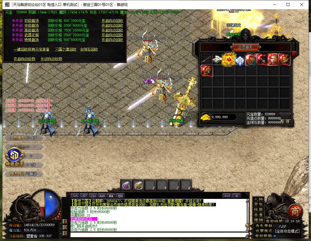 本服还原干净聊天框,无垃圾信息及回收提示,商铺不售材料全靠打怪,永久回收物品均由怪物爆出。游戏问题可QQ群联系客服完美解答,无论是否消费均用心服务,所有玩家公平对待。交易安全需通过商铺RMB点交易,提现手续费仅10%;私下交易一经查实封号并清除提现记录;禁止自动刷屏、骂人小号占安全区,违者警告或封号;严禁加速脱机外挂,发现必删永不解封。