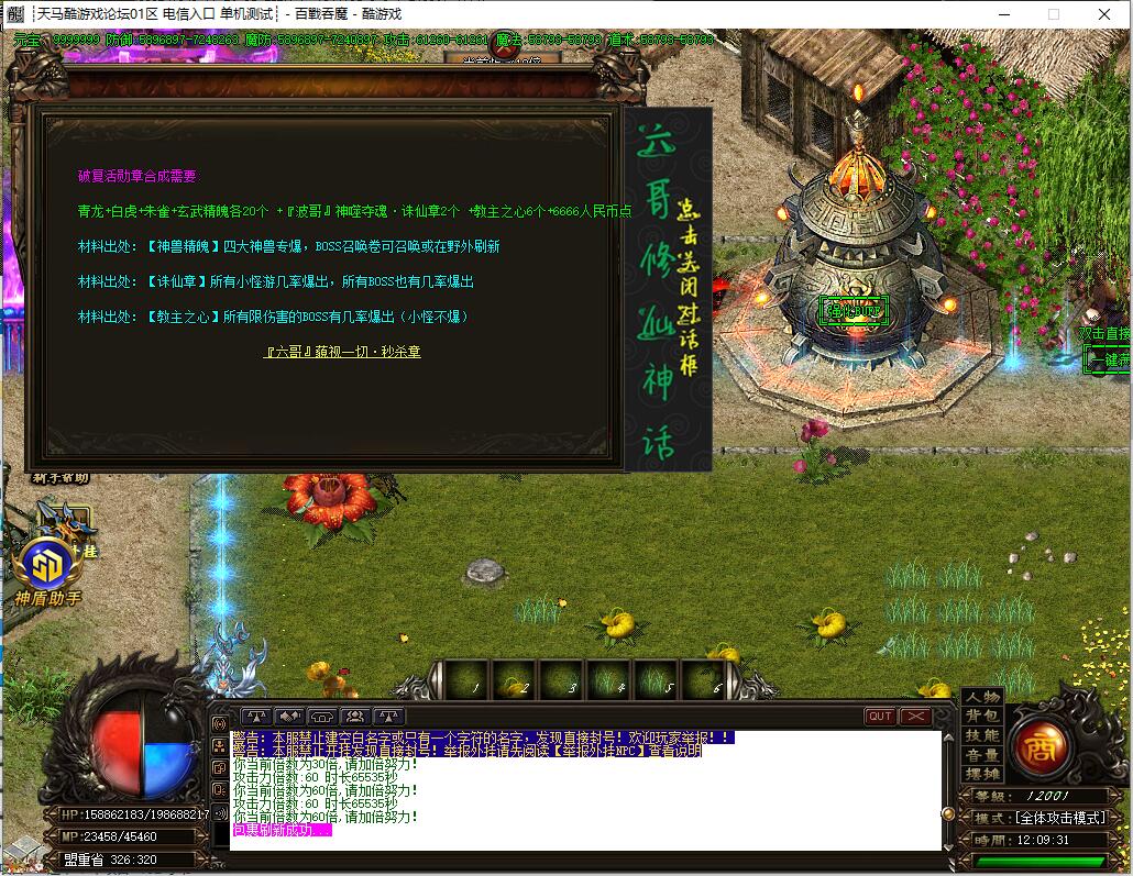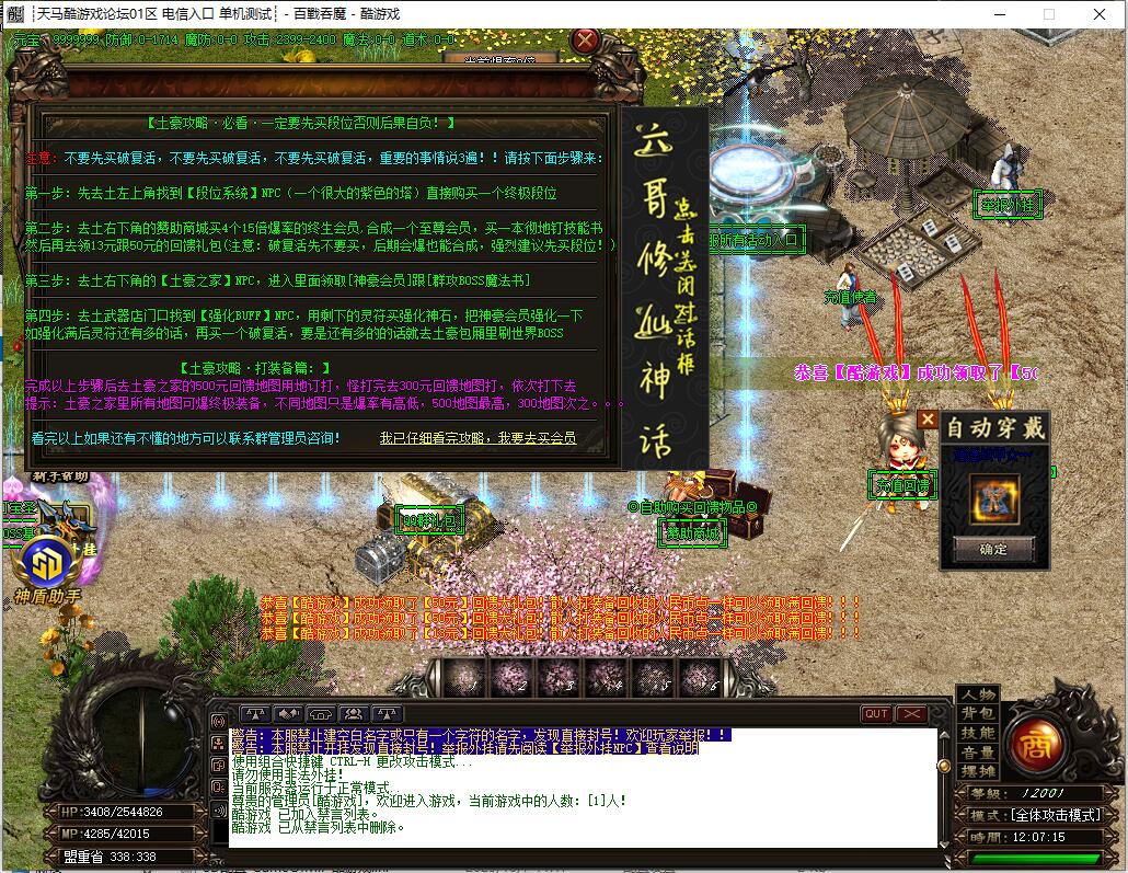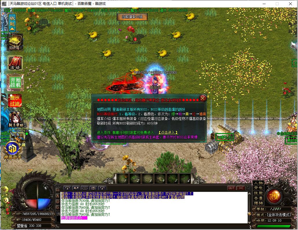 全民火龙单职业微变版本,纯散人服不花钱也可终极,一切靠打无合成,散人打金地图多怪物刷新速度快,装备货币保值,每日人品大爆发轻松300+收入。每天稳定四区开放(10:30 14:30 18:30 22:30),每个地图终极福利BOSS每晚22:01刷新,首区攻沙奖励RMB 588无封顶。市场最强封挂系统24小时接受举报,提醒设置二级密码防扫号。适度游戏益脑,拒绝盗版,享受健康生活。