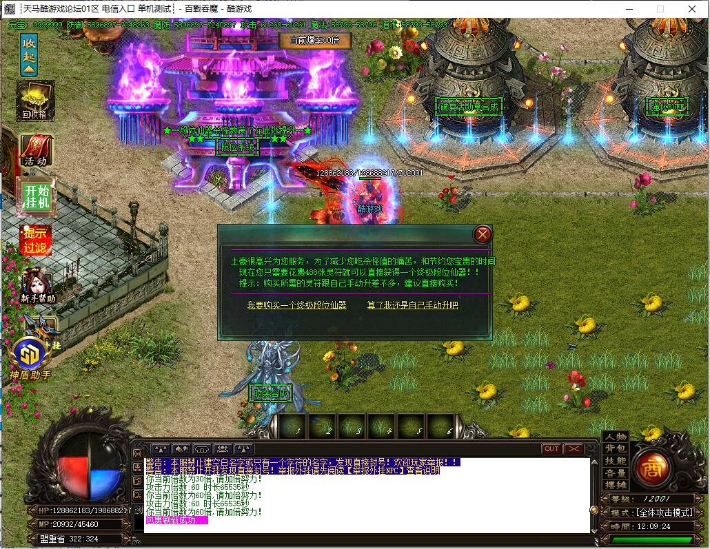 一刀999999999999亿血,一秒9999999999级散人牛逼!顶级全屏秒杀,攻击999999999999亿,送99999999999倍攻无限加速。