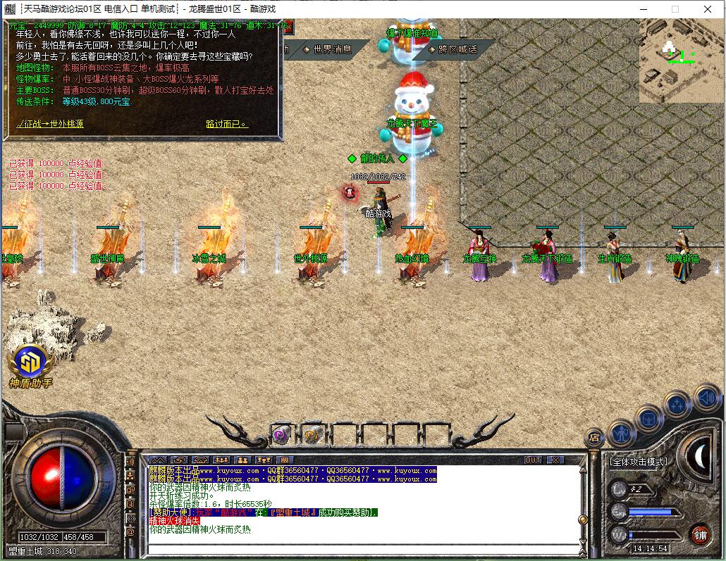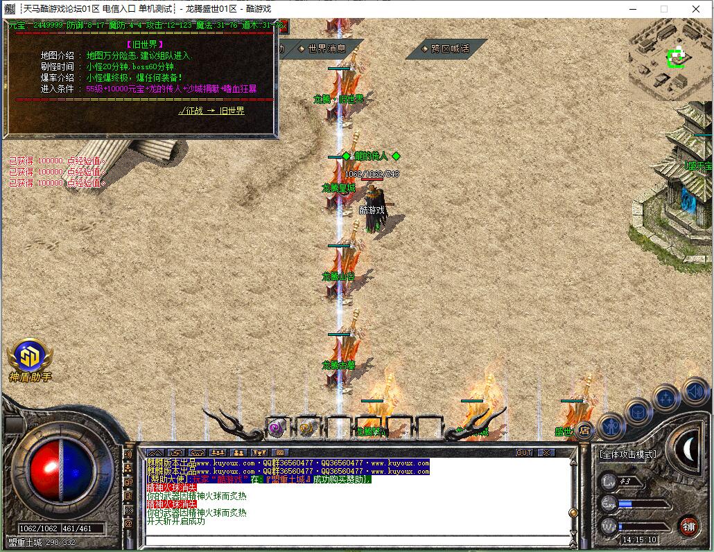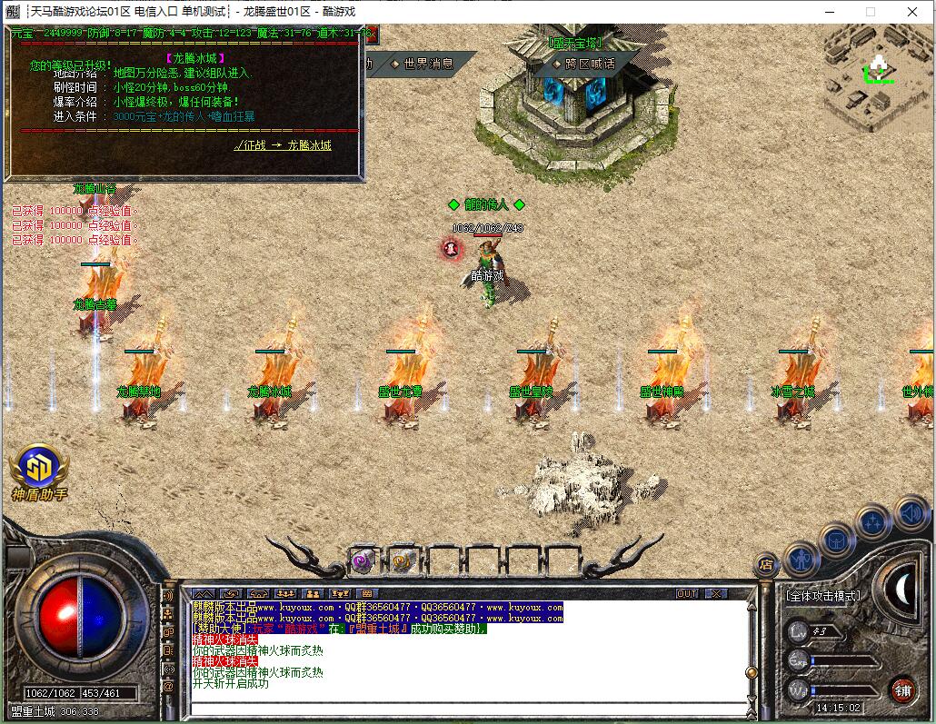 等这两个地图没有怪后,差不多有了流星火雨,就可以去龙腾皇城群怪,或回冰城和古墓打前期不能圣言的怪。等级达到要求后,按等级进入相应地图,或直接进入狂暴地图和时装地图用流星火雨群怪。