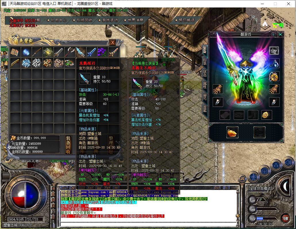 小怪爆一切,打到龙腾装备可卖(游戏玩家收)或自用。