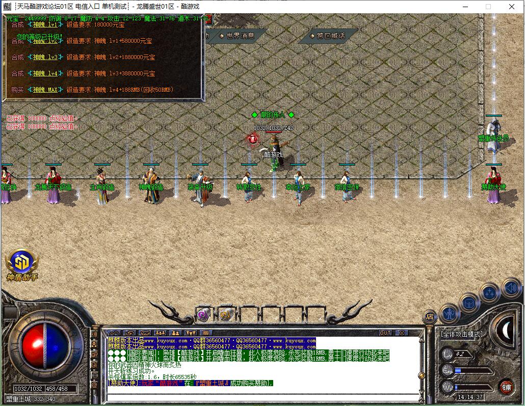 200RMB合成终极时装(保底回收100RMB),188RMB合成终极神魄(保底回收100RMB),388RMB升级71级(保底回收88RMB)。71级属性非常强大。