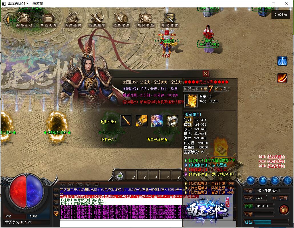 - 二区刷怪时间: 绿怪15分钟, 红怪20分钟, 黄粉20分钟