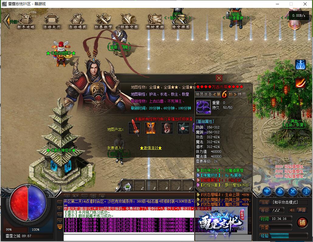 - 天外飞仙(通天塔100层之后): 60分钟刷新红怪