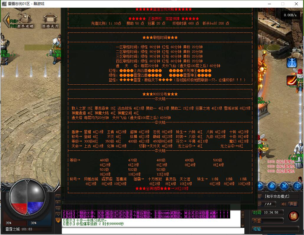 - 四区刷怪时间: 绿怪35分钟, 红怪40分钟, 黄粉2分钟