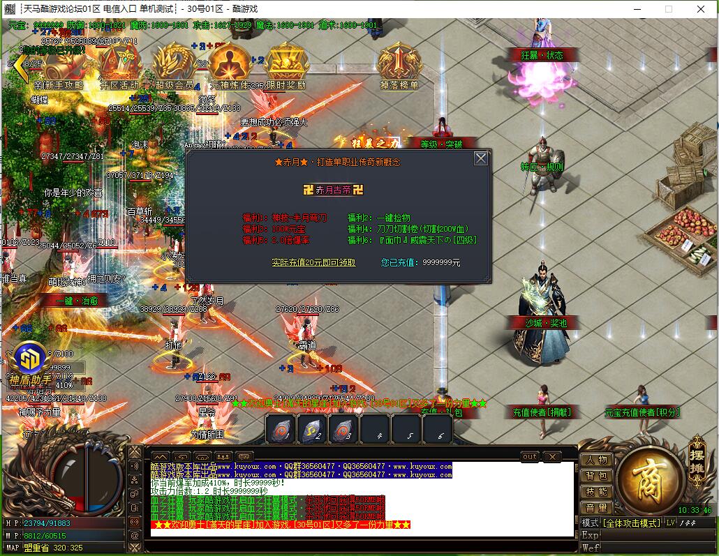 全民火龙单职业微变版本,纯散人服不花钱也可终极,一切靠打无合成,散人打金地图多怪物刷新速度快,装备货币保值,每日人品大爆发轻松300+收入。每天稳定四区开放(10:30 14:30 18:30 22:30),每个地图终极福利BOSS每晚22:01刷新,首区攻沙奖励RMB 588无封顶。市场最强封挂系统24小时接受举报,提醒设置二级密码防扫号。适度游戏益脑,拒绝盗版,享受健康生活。
