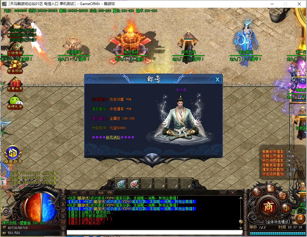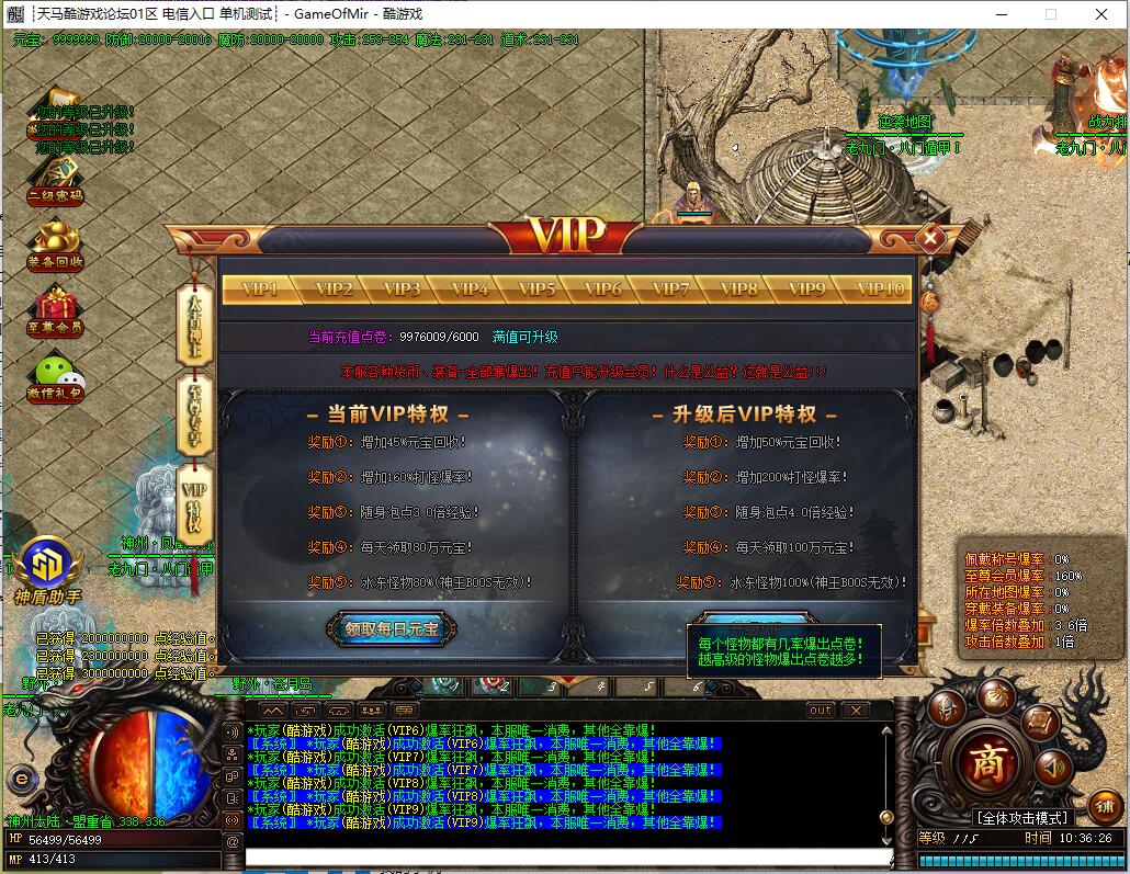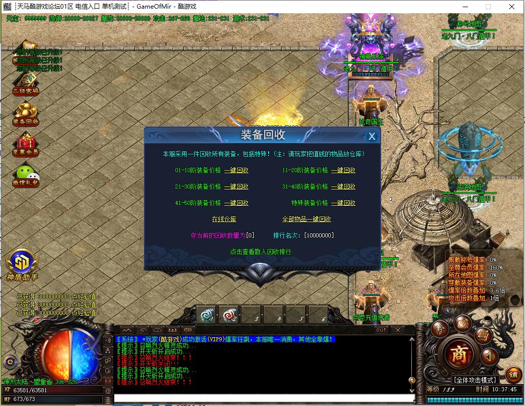 本服还原干净聊天框,无垃圾信息及回收提示,商铺不售材料全靠打怪,永久回收物品均由怪物爆出。游戏问题可QQ群联系客服完美解答,无论是否消费均用心服务,所有玩家公平对待。交易安全需通过商铺RMB点交易,提现手续费仅10%;私下交易一经查实封号并清除提现记录;禁止自动刷屏、骂人小号占安全区,违者警告或封号;严禁加速脱机外挂,发现必删永不解封。