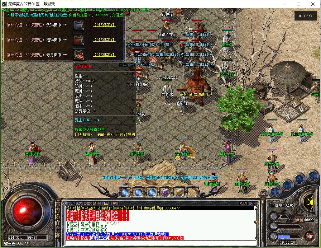 - 88000血怪(荣耀死神、荣耀战神、荣耀雷神、荣耀锤神、荣耀瘟神、荣耀青龙、荣耀金龙、荣耀红龙、狂暴尸王):爆红剑命运、祖玛赤月武器、赤月。